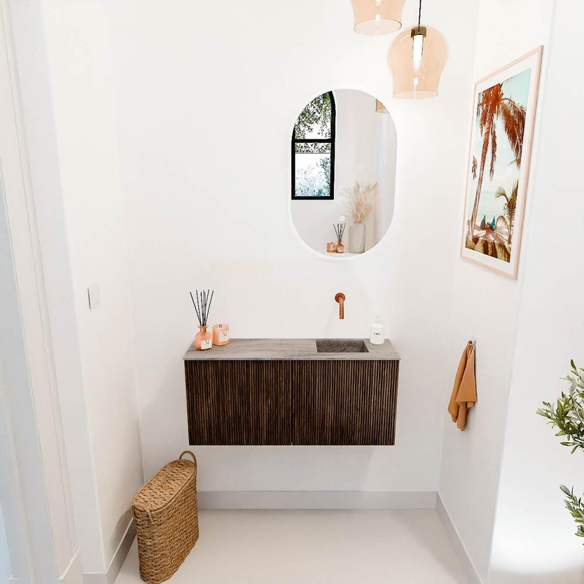 De warme walnootkleur en het gebruik van massief eikenhout met verticale groeven geven dit meubel een tijdloze en luxe uitstraling. Het subtiele design past moeiteloos in diverse interieurstijlen, van modern tot klassiek. Door de hoogwaardige afwerking straalt het meubel kwaliteit en vakmanschap uit, waardoor jouw badkamer direct een upgrade krijgt. Zo creëer je een ruimte die niet alleen functioneel is, maar ook een echte blikvanger vormt.