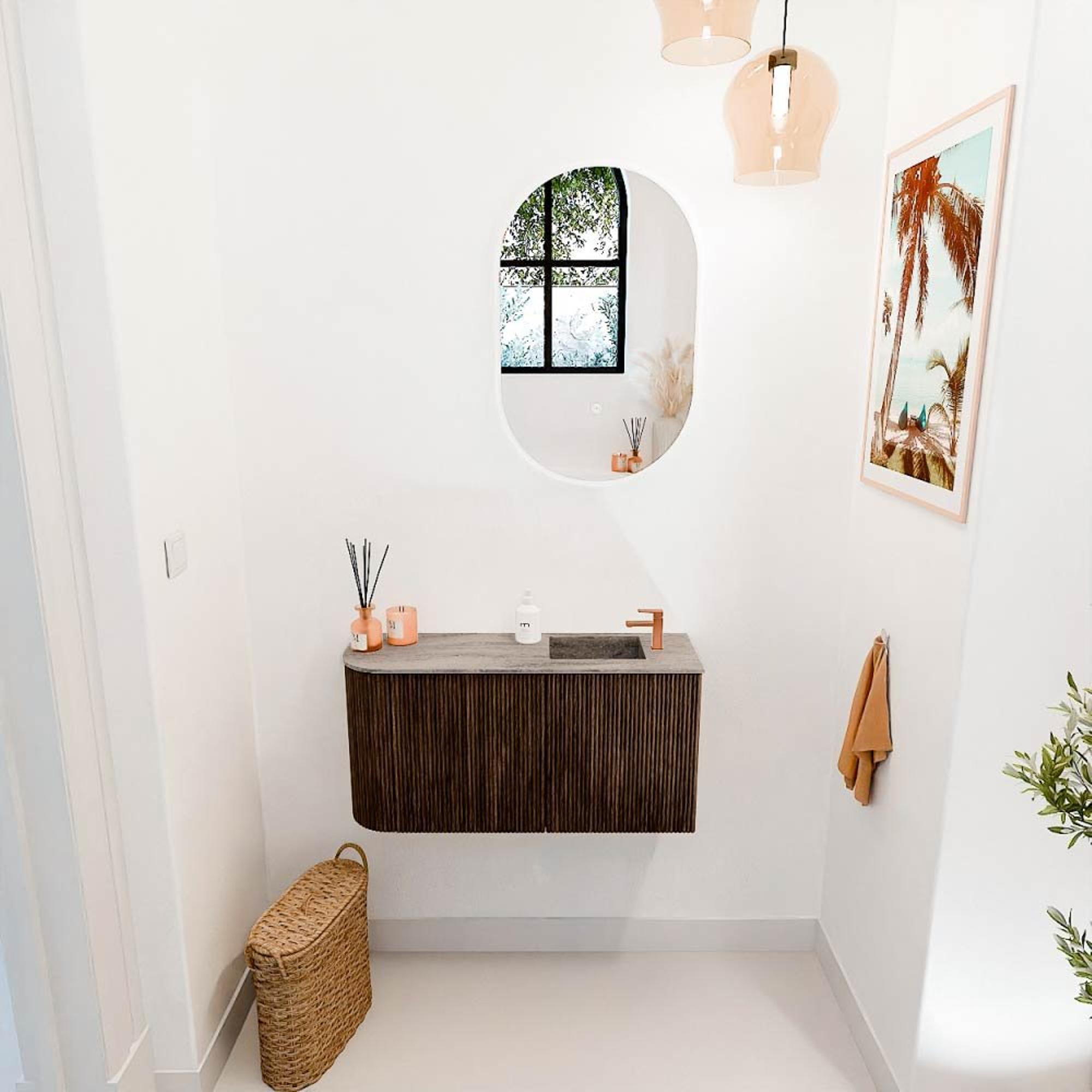 Mondiaz JOYA-DLUX 81.6cm toiletmeubel - ronding links kleur Walnut - Wastafel FAYE positie Rechts 1 kraangat kleur Oza.