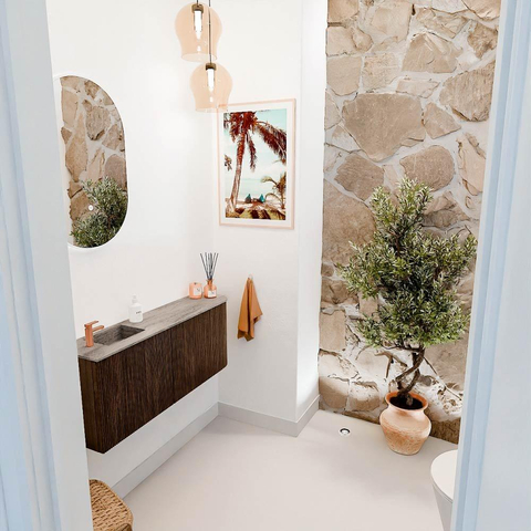 Gemaakt van een combinatie van massief eikenhout en eikenfineer, biedt dit meubel een solide basis die lang meegaat. De hoogwaardige afwerking beschermt het hout tegen vocht en slijtage, waardoor je verzekerd bent van een meubel dat zijn schoonheid behoudt, zelfs in een vochtige badkameromgeving. Deze duurzaamheid betekent dat je jarenlang kunt genieten van een meubel dat er als nieuw blijft uitzien, zonder concessies te doen aan kwaliteit.
