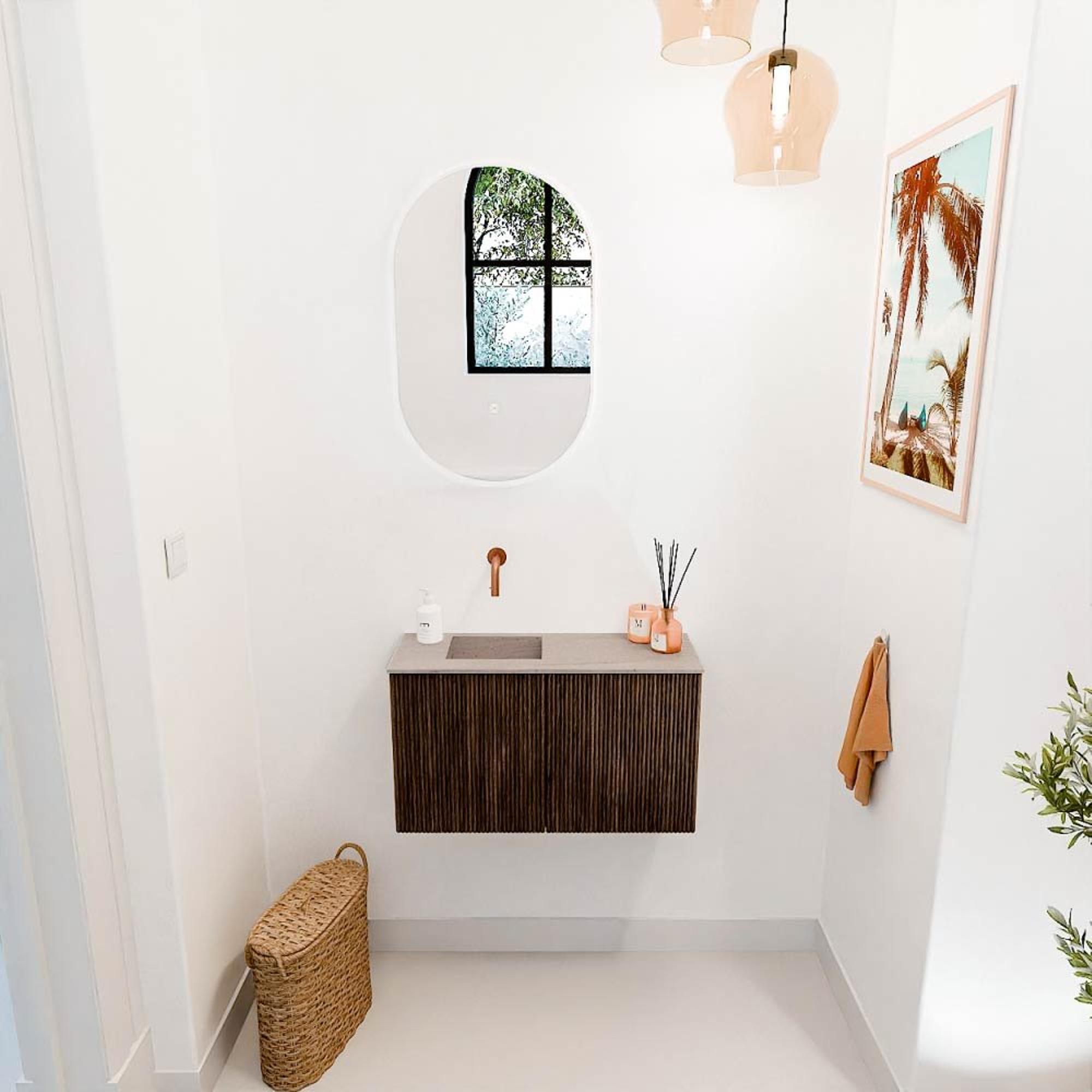 Mondiaz JOYA-DLUX 70cm toiletmeubel - kleur Walnut - Wastafel FAYE positie Links Zonder kraangat kleur Saba.