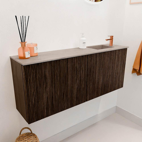 Mondiaz JOYA-DLUX 100cm toiletmeubel - kleur Walnut - Wastafel FAYE positie Rechts 1 kraangat kleur Saba.