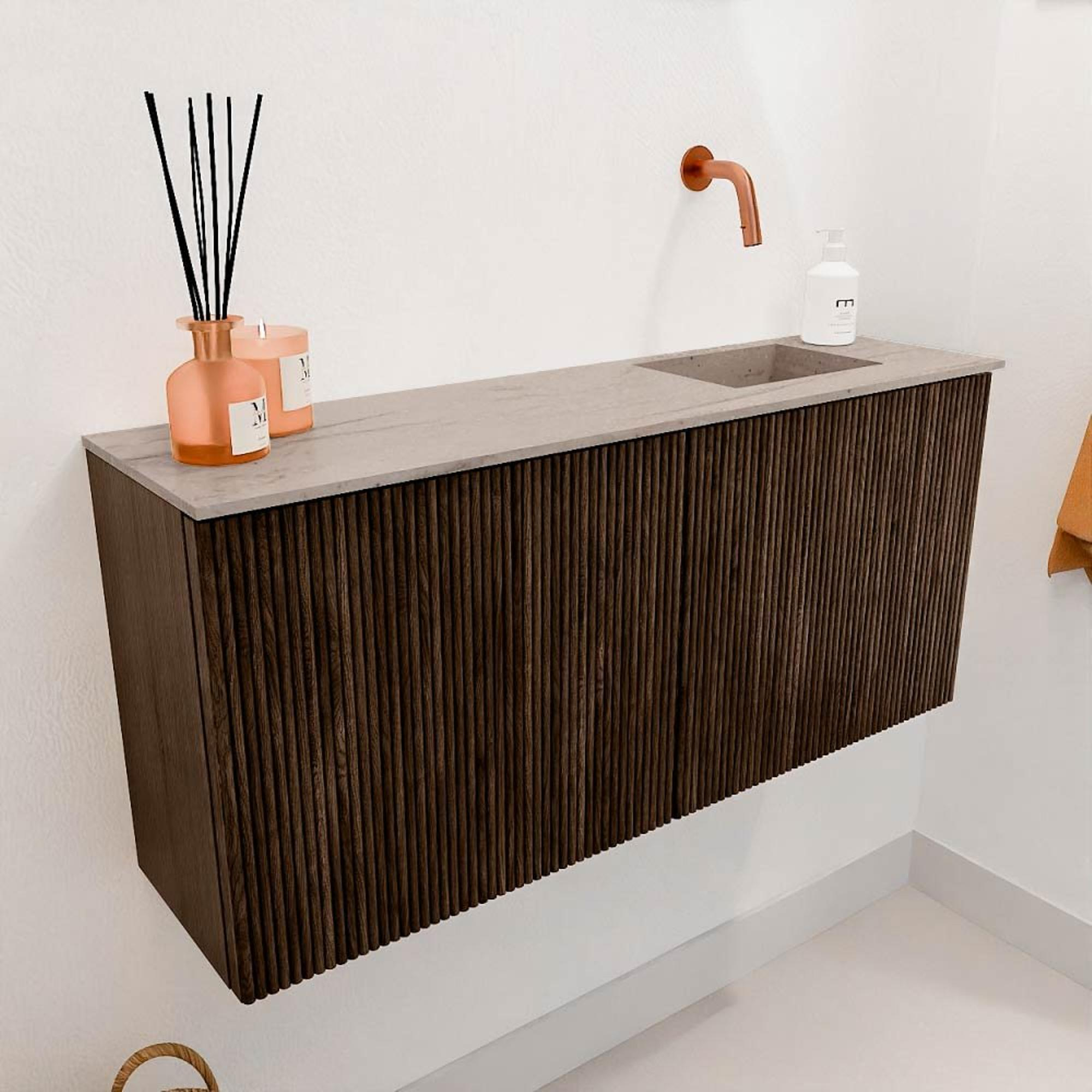 Mondiaz JOYA-DLUX 90cm toiletmeubel - kleur Walnut - Wastafel FAYE positie Rechts Zonder kraangat kleur Saba.