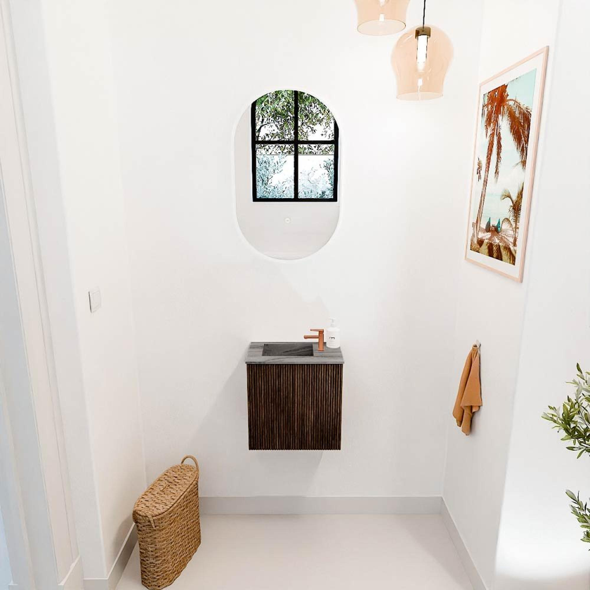 Mondiaz JOYA-DLUX 40cm toiletmeubel - kleur Walnut - Wastafel FAYE positie Links 1 kraangat kleur Sombra.
