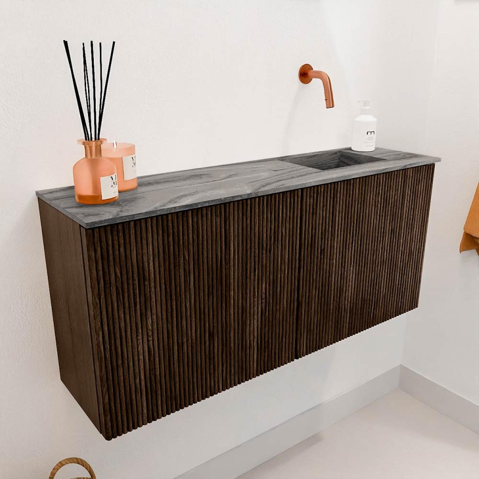 Mondiaz JOYA-DLUX 90cm toiletmeubel - kleur Walnut - Wastafel FAYE positie Rechts Zonder kraangat kleur Sombra.