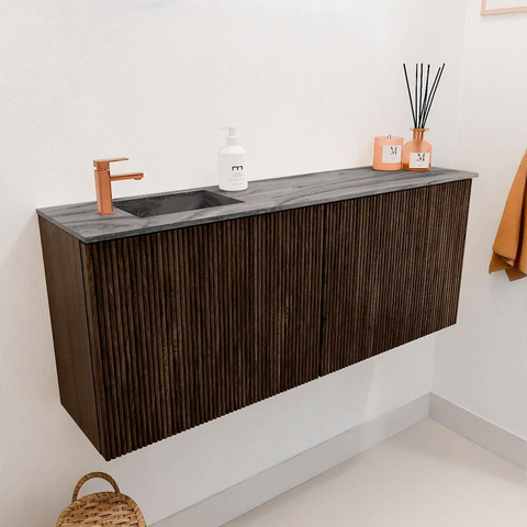 - Wastafel FAYE in kleur Sombra met links geplaatst 1 kraangat voor optimale gebruiksvriendelijkheid