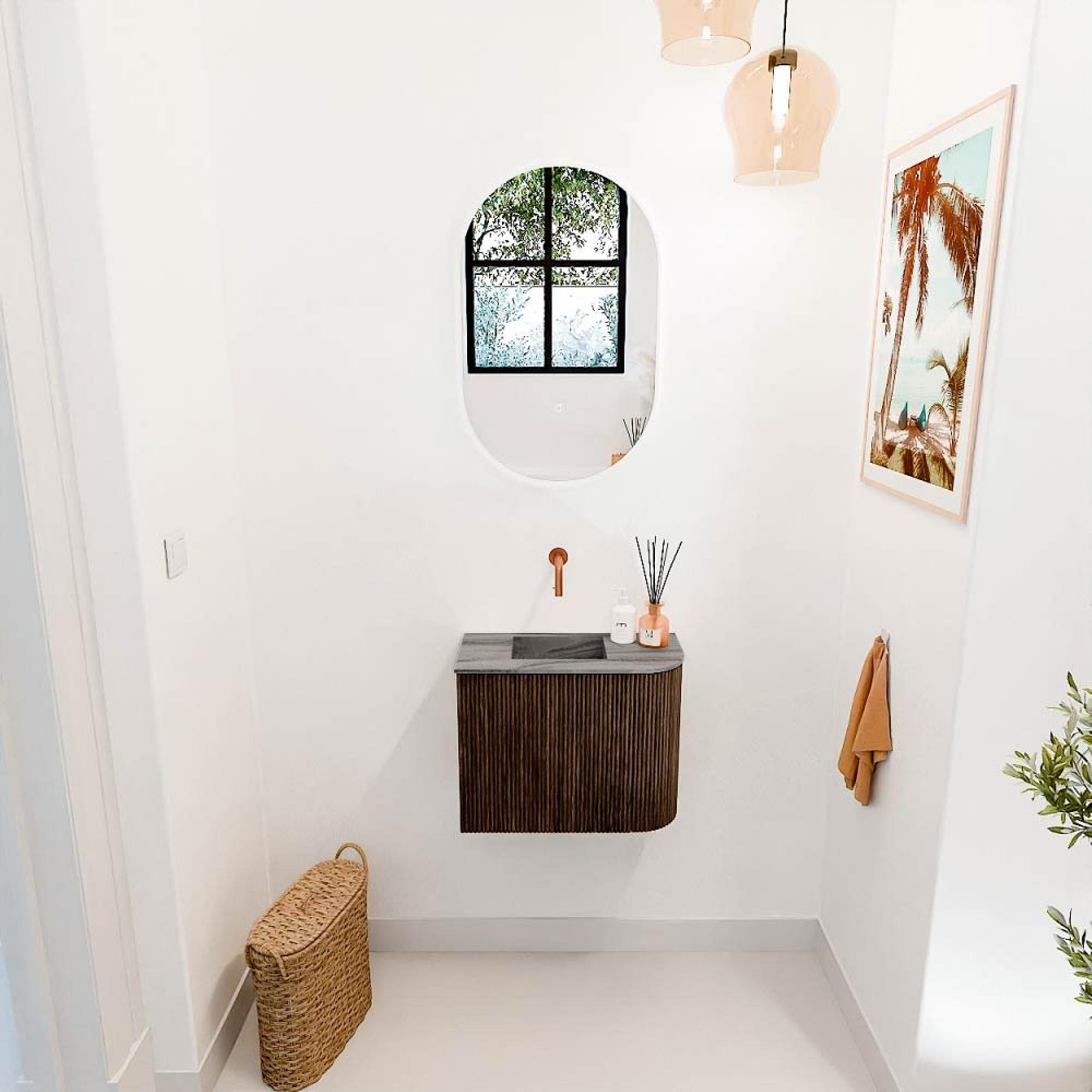 Mondiaz JOYA-DLUX 51.6cm toiletmeubel - ronding rechts kleur Walnut - Wastafel FAYE positie Links Zonder kraangat kleur Sombra.