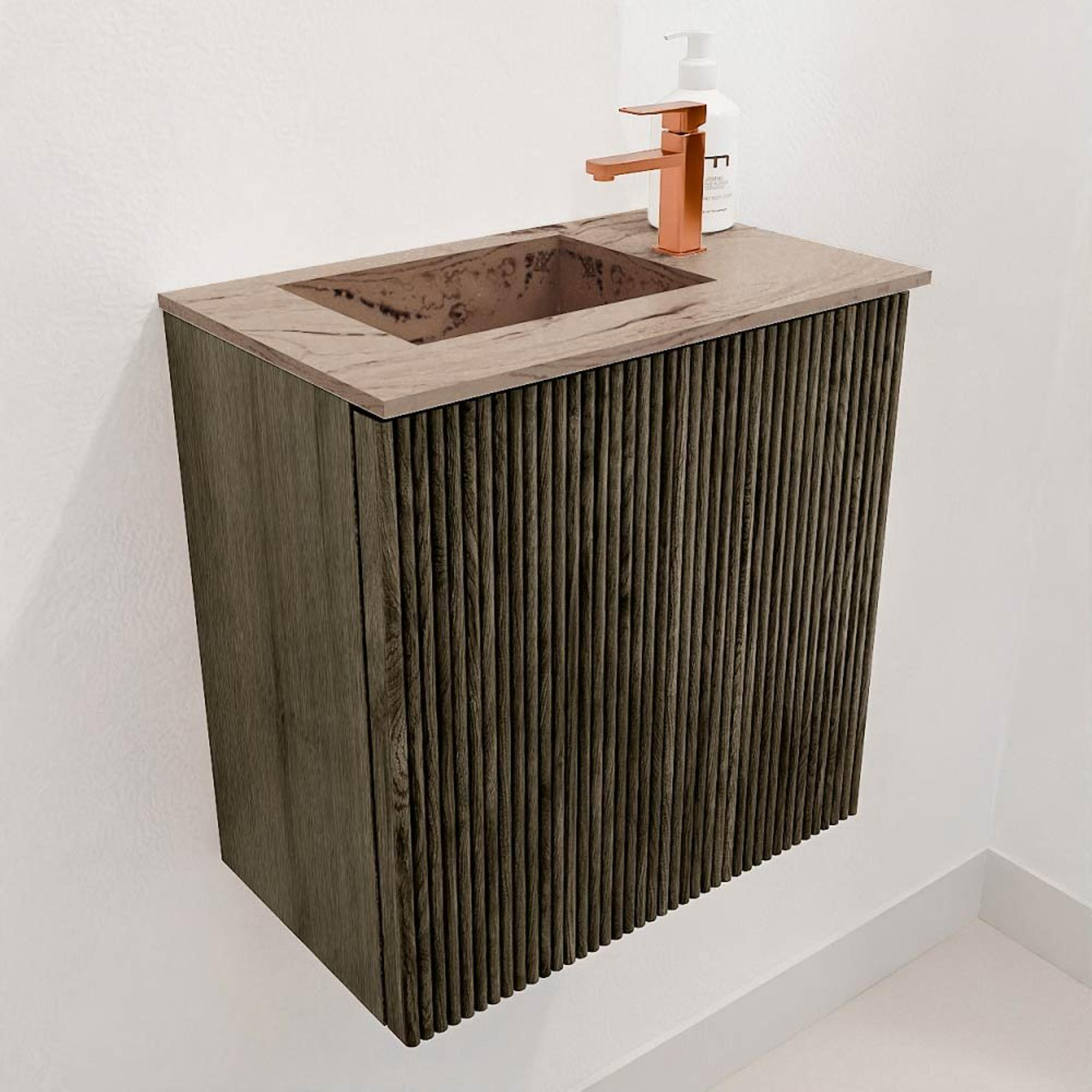 Mondiaz JOYA-DLUX 40cm toiletmeubel - kleur Shadow - Wastafel FAYE positie Links 1 kraangat kleur Arena.