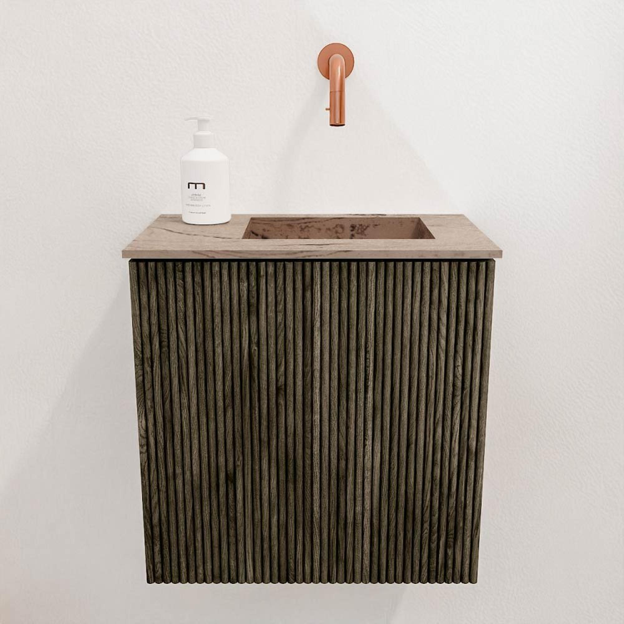 Mondiaz JOYA-DLUX 40cm toiletmeubel - kleur Shadow - Wastafel FAYE positie Rechts Zonder kraangat kleur Arena.