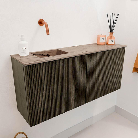 Mondiaz JOYA-DLUX 90cm toiletmeubel - kleur Shadow - Wastafel FAYE positie Links Zonder kraangat kleur Arena.
