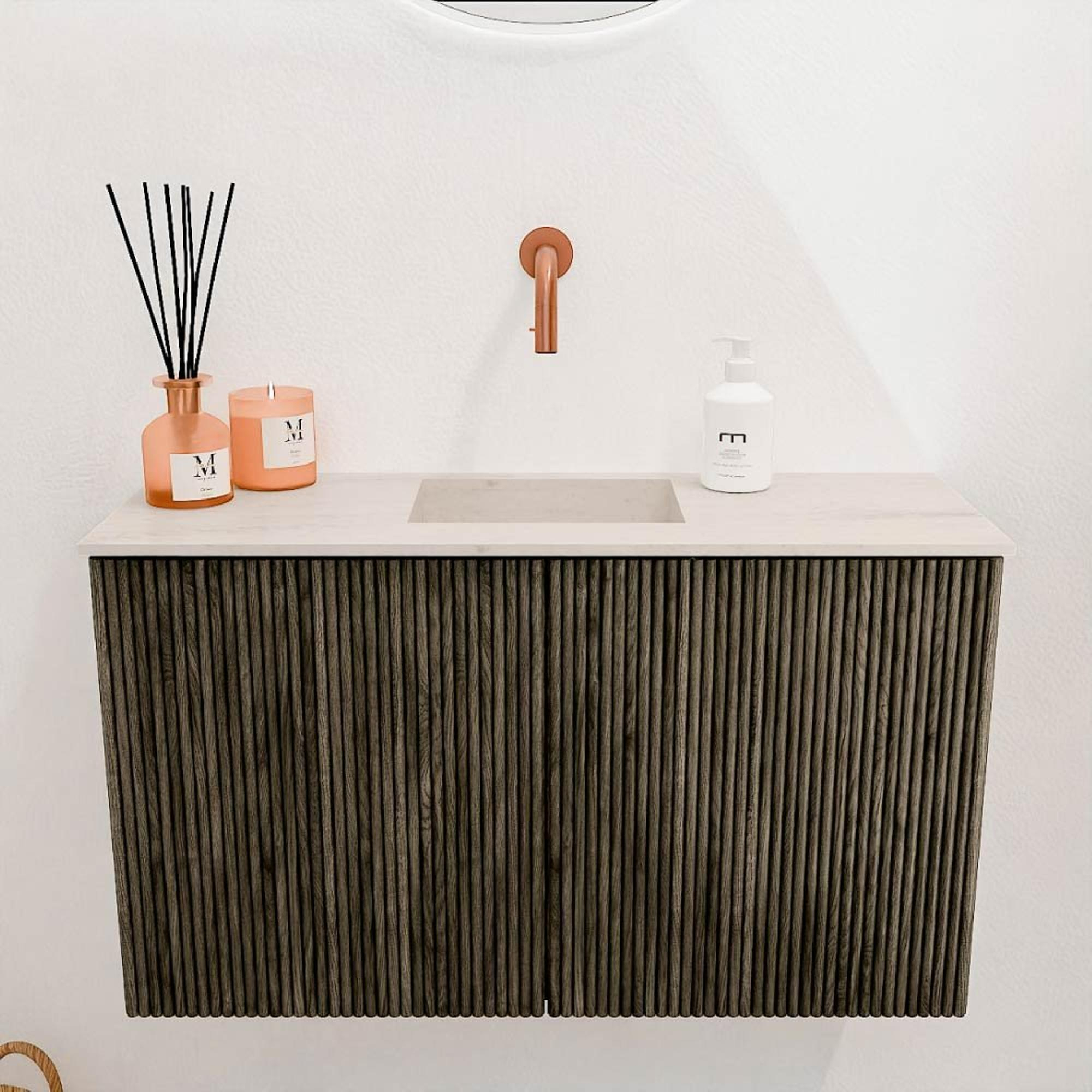 - Wastafel Faye in Meli kleur, positie midden – zonder kraangat voor maximale flexibiliteit