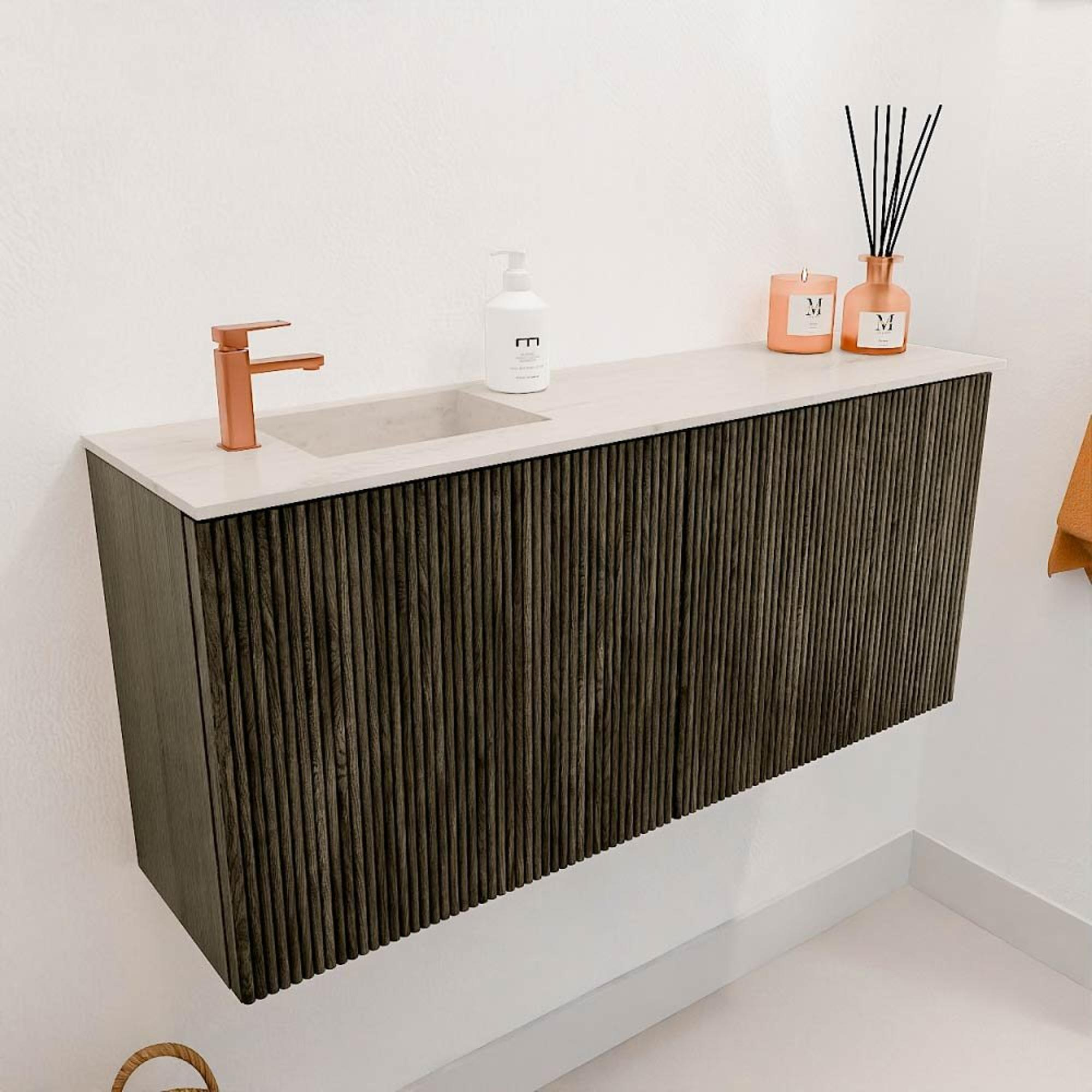 - Geïntegreerde wastafel Faye met links geplaatst kraangat in kleur Meli