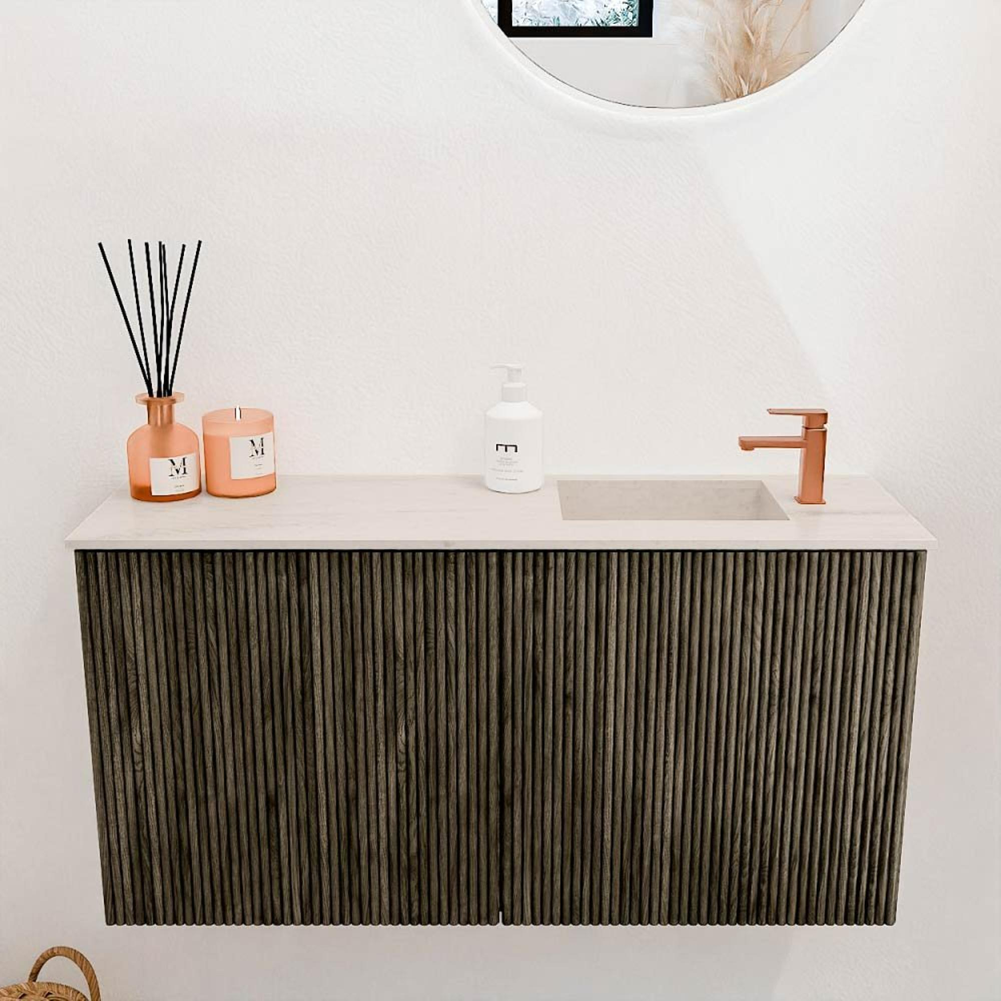 De matte kleur Shadow geeft het meubel een eigentijdse en verfijnde uitstraling. Het subtiele grijs past perfect bij zowel strakke als warme badkamerinterieurs, waardoor het een veelzijdige keuze is. De strakke lijnen en het minimalistische design zorgen ervoor dat het meubel een echte blikvanger wordt zonder te overheersen. Zo creëer je een badkamer die niet alleen functioneel is, maar ook uitnodigend en stijlvol aanvoelt.