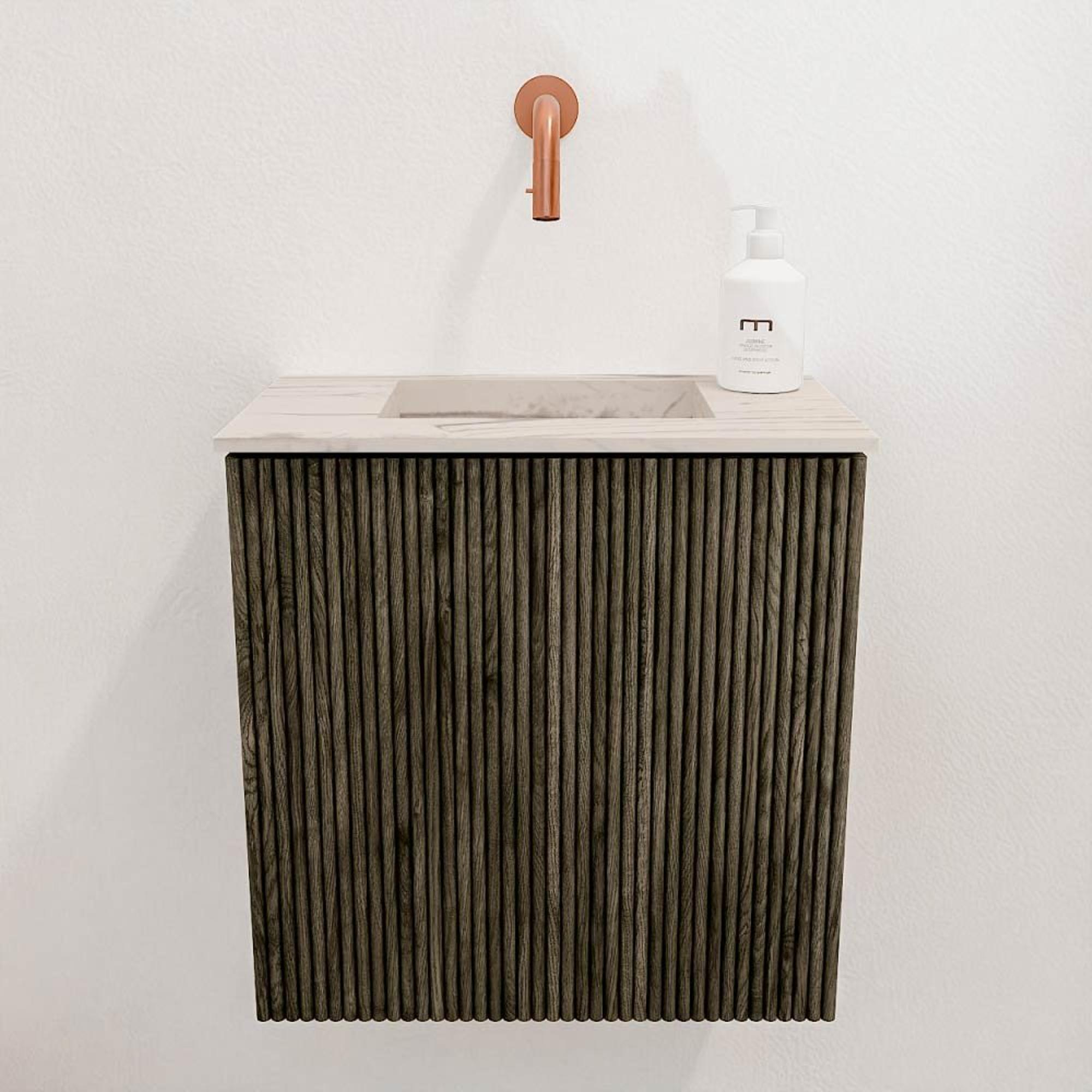 Met dit compacte en stijlvolle meubel geef je jouw toilet een directe upgrade. Het combineert een verfijnde uitstraling met praktische functionaliteit, waardoor je badkamer niet alleen mooier maar ook overzichtelijker wordt. Dankzij het subtiele formaat past het meubel perfect in kleinere ruimtes zonder in te leveren op opbergruimte. De natuurlijke tinten en hoogwaardige materialen zorgen voor een warme sfeer, terwijl de wastafel zonder kraangat je de vrijheid geeft om zelf een kraan naar keuze te plaatsen. Zo creëer je een persoonlijke en tijdloze uitstraling die moeiteloos aansluit bij jouw stijl en wensen.