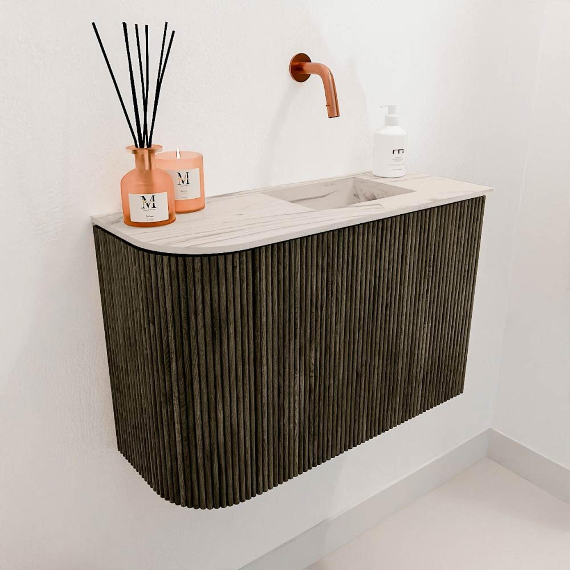 Mondiaz JOYA-DLUX 61.6cm toiletmeubel - ronding links kleur Shadow - Wastafel FAYE positie Rechts Zonder kraangat kleur Nata.