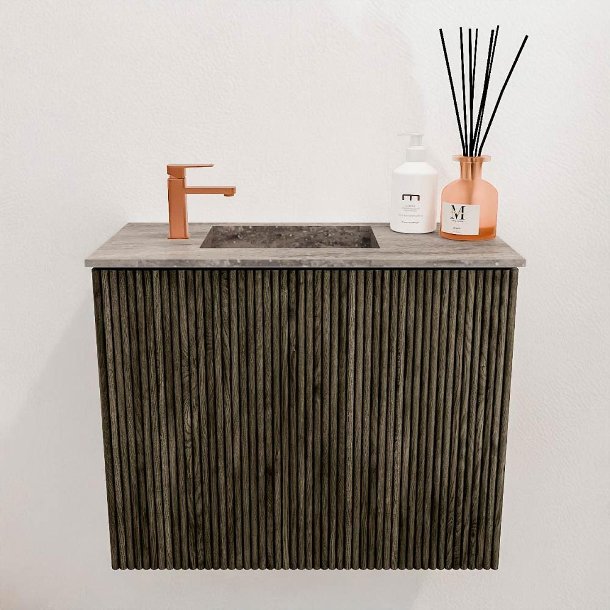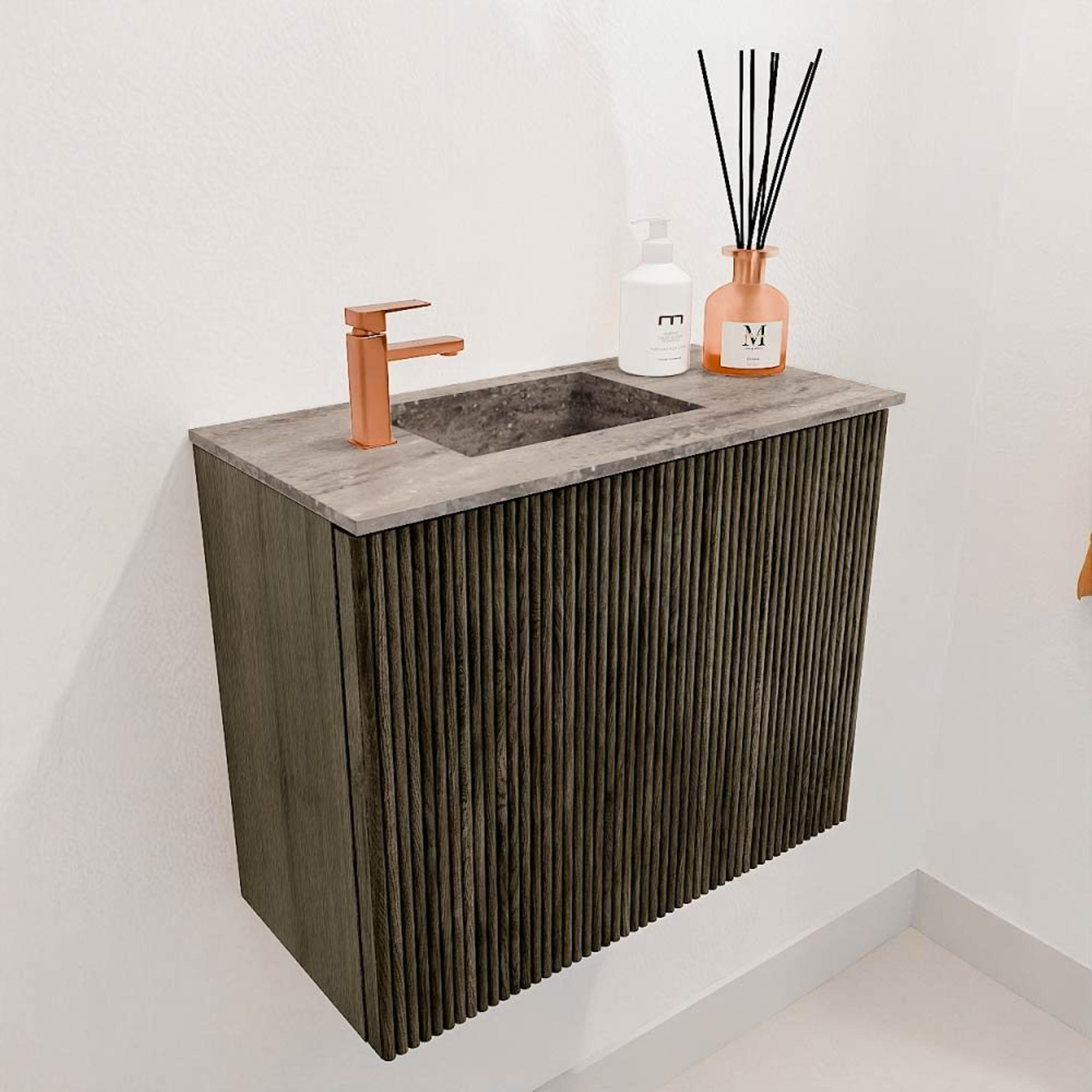 Het meubel valt direct op door het tijdloze design en de hoogwaardige materialen. Het massief eikenhout aan de voorkant straalt warmte en karakter uit, terwijl de Shadow-kleur een moderne twist geeft die moeiteloos past in uiteenlopende badkamerstijlen. Door de subtiele afwerking en het strakke lijnenspel oogt het meubel rustig en elegant. Zo voeg je een stijlvol element toe dat niet alleen mooi is om te zien, maar ook de sfeer in je badkamer aanzienlijk verbetert.