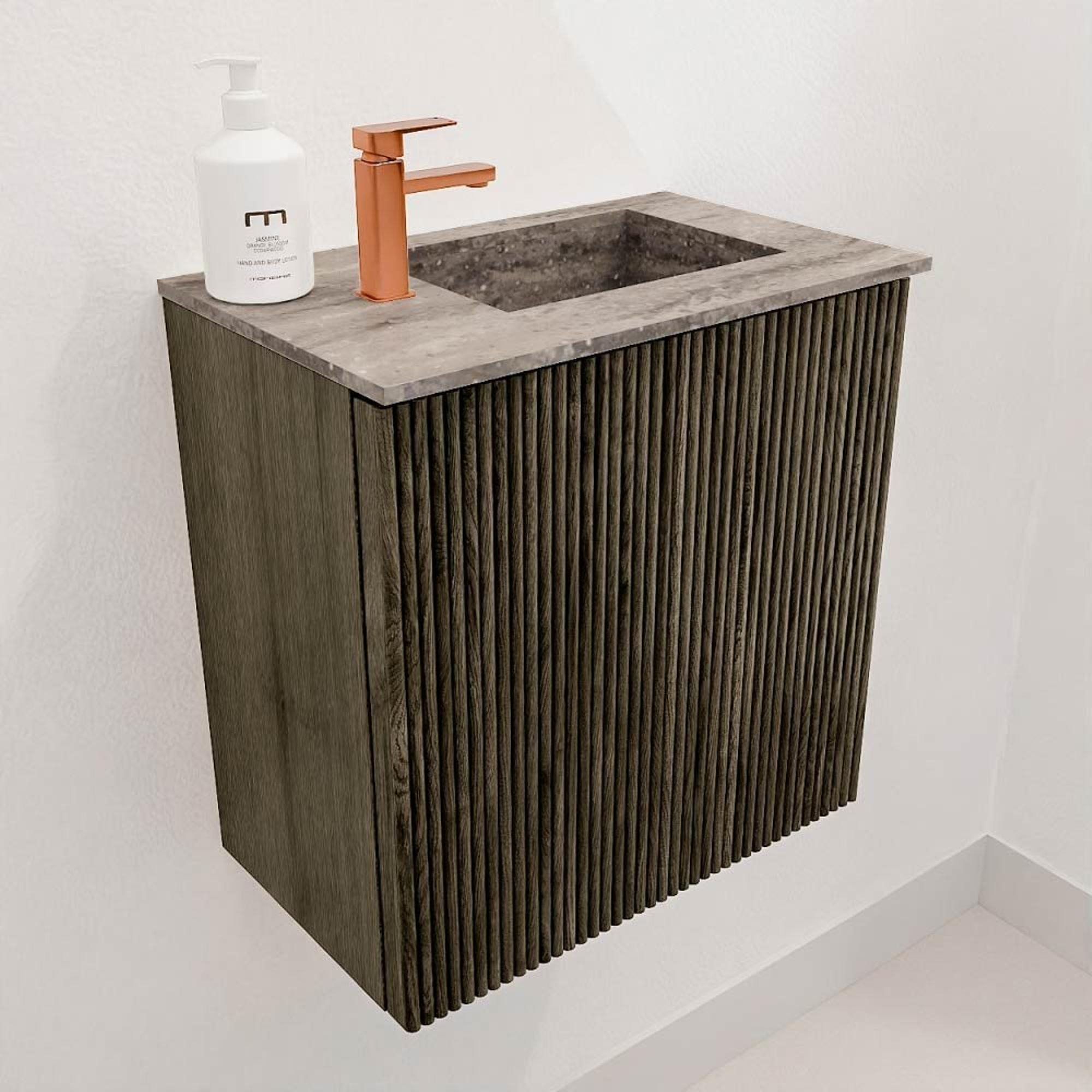 Mondiaz JOYA-DLUX 40cm toiletmeubel - kleur Shadow - Wastafel FAYE positie Rechts 1 kraangat kleur Oza.