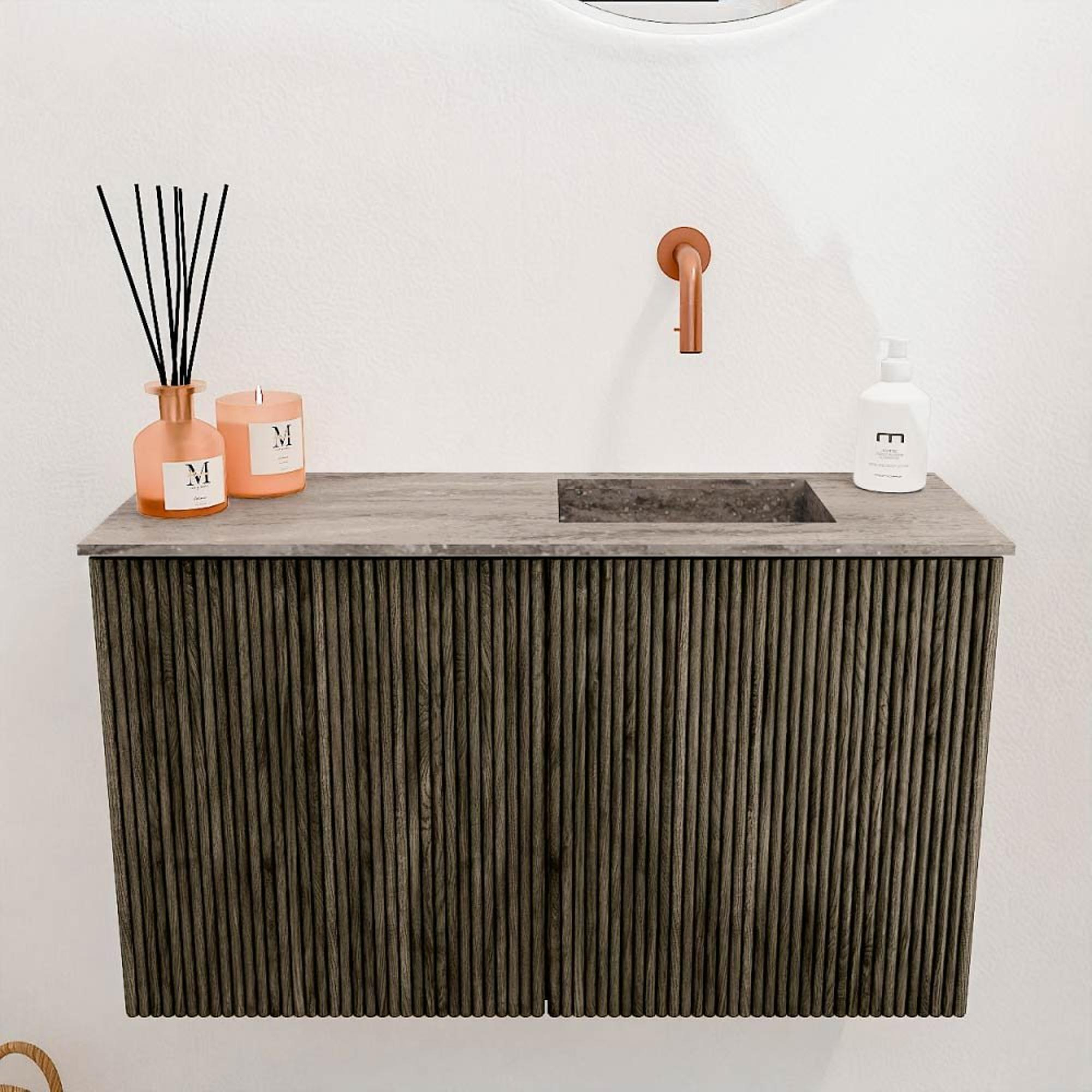Met dit prachtige meubel geef je jouw badkamer direct een warme, natuurlijke uitstraling. De combinatie van de diepe, rijke kleur Shadow met het hoogwaardige eikenhout zorgt voor een tijdloos en stijlvol geheel. Dankzij het slimme ontwerp met twee deuren creëer je niet alleen extra opbergruimte, maar houd je ook alles netjes uit het zicht. De wastafel is perfect gepositioneerd aan de rechterkant, wat zorgt voor een praktische indeling die jouw dagelijkse routine moeiteloos ondersteunt. Dit meubel is ideaal voor wie houdt van een strakke, moderne badkamer met een natuurlijke touch. Het ontbreken van een kraangat geeft je bovendien de vrijheid om zelf de kraan te kiezen die het beste bij jouw stijl en wensen past. Zo maak je van jouw badkamer een plek waar functionaliteit en design hand in hand gaan.