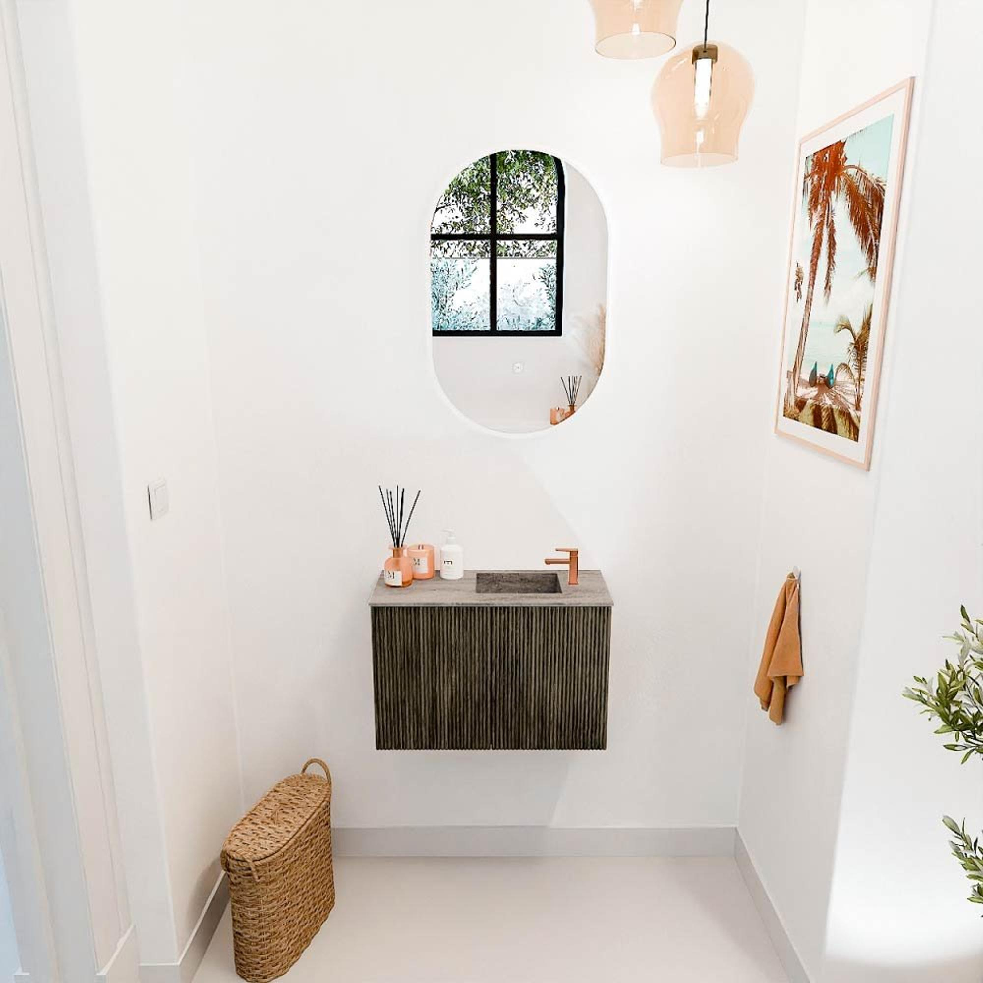 Met dit prachtige meubel geef je jouw badkamer direct een stijlvolle en warme uitstraling. Het combineert praktische functionaliteit met een verfijnd design, waardoor het niet alleen een blikvanger is, maar ook een slimme oplossing voor kleinere ruimtes. Dankzij de subtiele kleur Shadow en de verticale groeven in het hout straalt het meubel een tijdloze elegantie uit die moeiteloos aansluit bij diverse interieurstijlen. De wastafel met rechts geplaatste kraangat maakt het gebruik comfortabel en efficiënt, terwijl het compacte formaat van 60 cm breed perfect past in zowel een gastentoilet als een kleinere badkamer. Zo creëer je eenvoudig een opgeruimde en uitnodigende ruimte waar je elke dag met plezier begint.