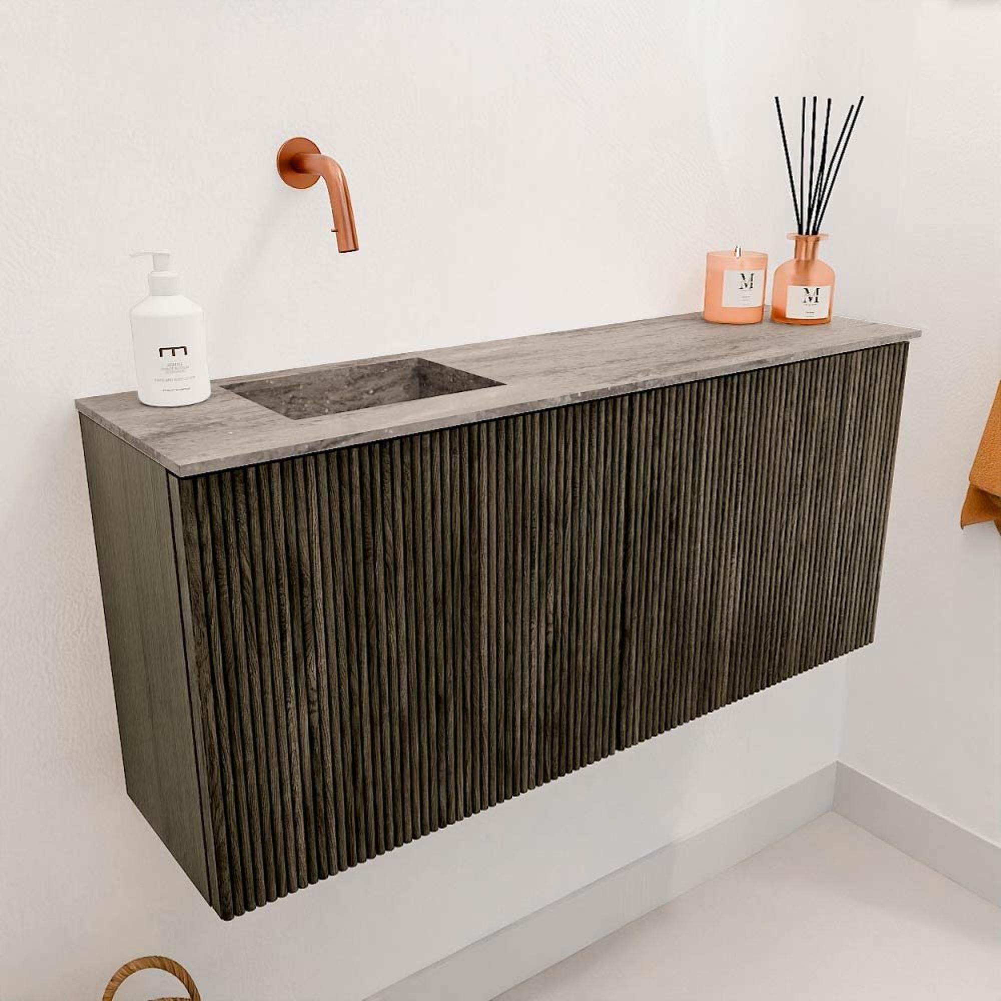 Het meubel valt direct op door zijn tijdloze design en hoogwaardige afwerking. De diepe Shadow-kleur geeft een warme en luxe uitstraling die je badkamer een exclusieve touch geeft. De verticale ribbelstructuur op de fronten voegt een subtiel speels element toe, waardoor het meubel niet alleen functioneel is, maar ook een echte blikvanger. Door het strakke, moderne ontwerp past het moeiteloos in zowel klassieke als eigentijdse badkamers. Zo geniet je van een meubel dat niet alleen mooi is, maar ook jarenlang stijlvol blijft.