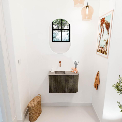 Deze prachtige kast met wastafel transformeert jouw badkamer of toiletruimte in een stijlvolle en functionele plek. Met zijn subtiele ronding aan de rechterkant en de warme, donkere kleur Shadow geeft dit meubel direct sfeer en karakter aan de ruimte. De wastafel, geplaatst aan de linkerkant zonder kraangat, biedt je de vrijheid om zelf de kraan te kiezen die het beste bij jouw stijl en wensen past. Dankzij het compacte formaat van 61,6 cm breed is dit meubel ideaal voor kleinere badkamers of toiletten waar je toch niet wilt inleveren op comfort en uitstraling. Het gebruik van hoogwaardige materialen zorgt voor een duurzame en betrouwbare afwerking, zodat je jarenlang plezier hebt van deze aanwinst. Dit meubel is niet alleen mooi om te zien, maar ook praktisch dankzij de slimme indeling en het handige opberggedeelte achter de deur. Zo houd je je badkamer netjes en overzichtelijk, terwijl je geniet van een luxe uitstraling die je elke dag weer inspireert.
