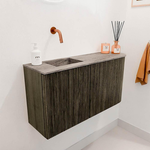 - Wastafel Faye in kleur Oza zonder kraangat, positie links