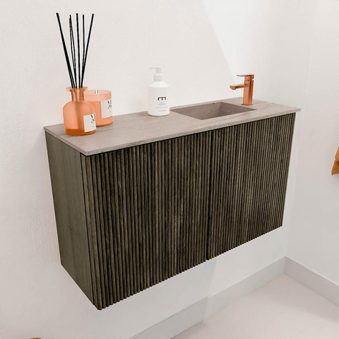Mondiaz JOYA-DLUX 70cm toiletmeubel - kleur Shadow - Wastafel FAYE positie Rechts 1 kraangat kleur Saba.
