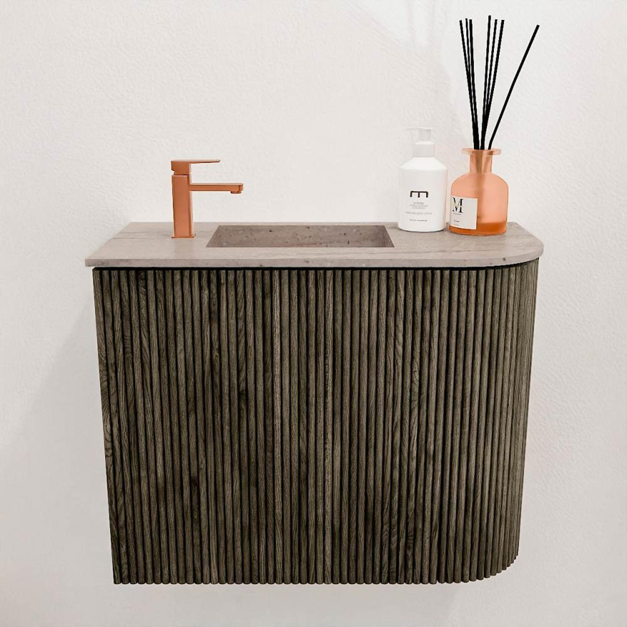 Mondiaz JOYA-DLUX 51.6cm toiletmeubel - ronding rechts kleur Shadow - Wastafel FAYE positie Links 1 kraangat kleur Saba.
