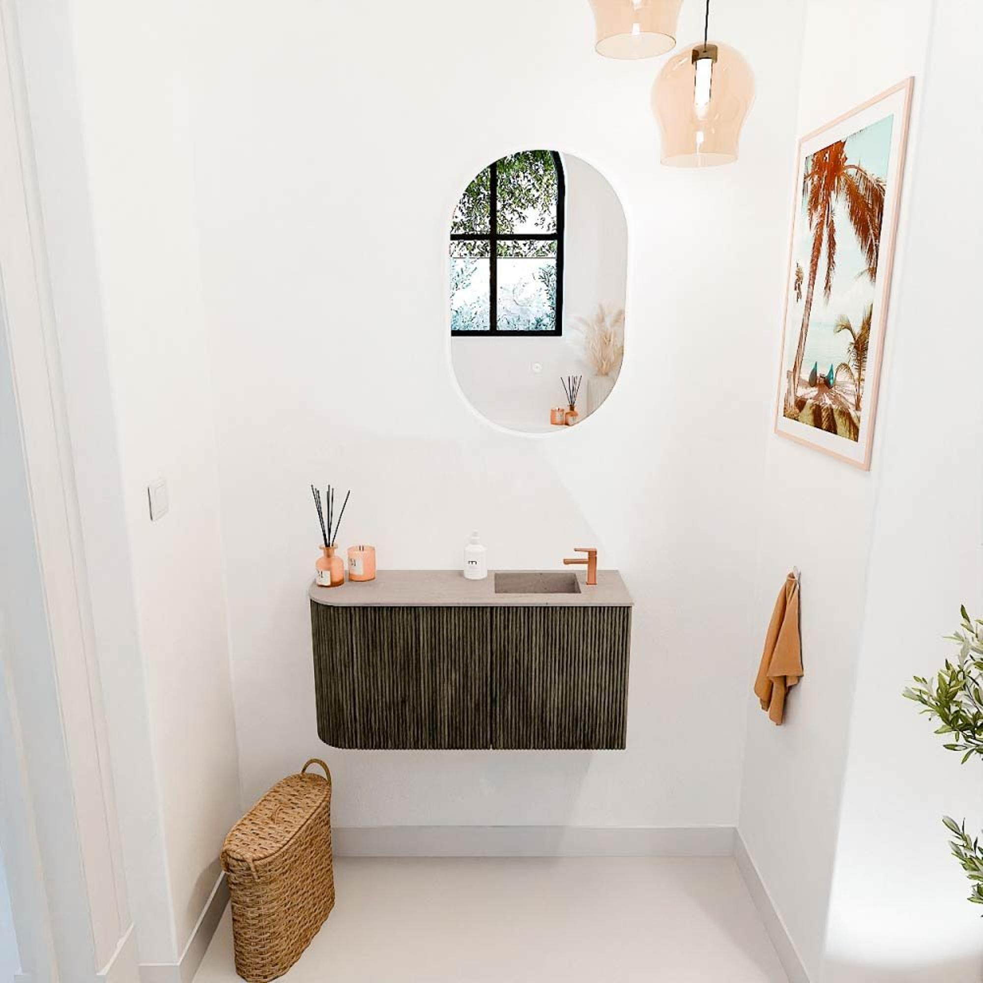 Mondiaz JOYA-DLUX 81.6cm toiletmeubel - ronding links kleur Shadow - Wastafel FAYE positie Rechts 1 kraangat kleur Saba.