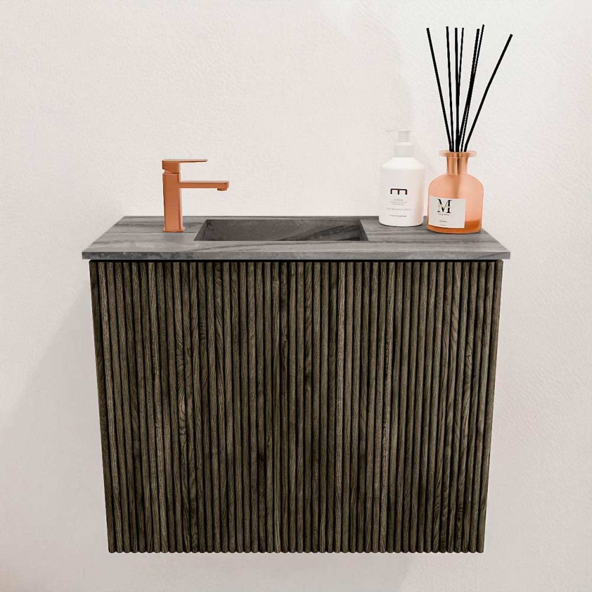 Mondiaz JOYA-DLUX 50cm toiletmeubel - kleur Shadow - Wastafel FAYE positie Links 1 kraangat kleur Sombra.