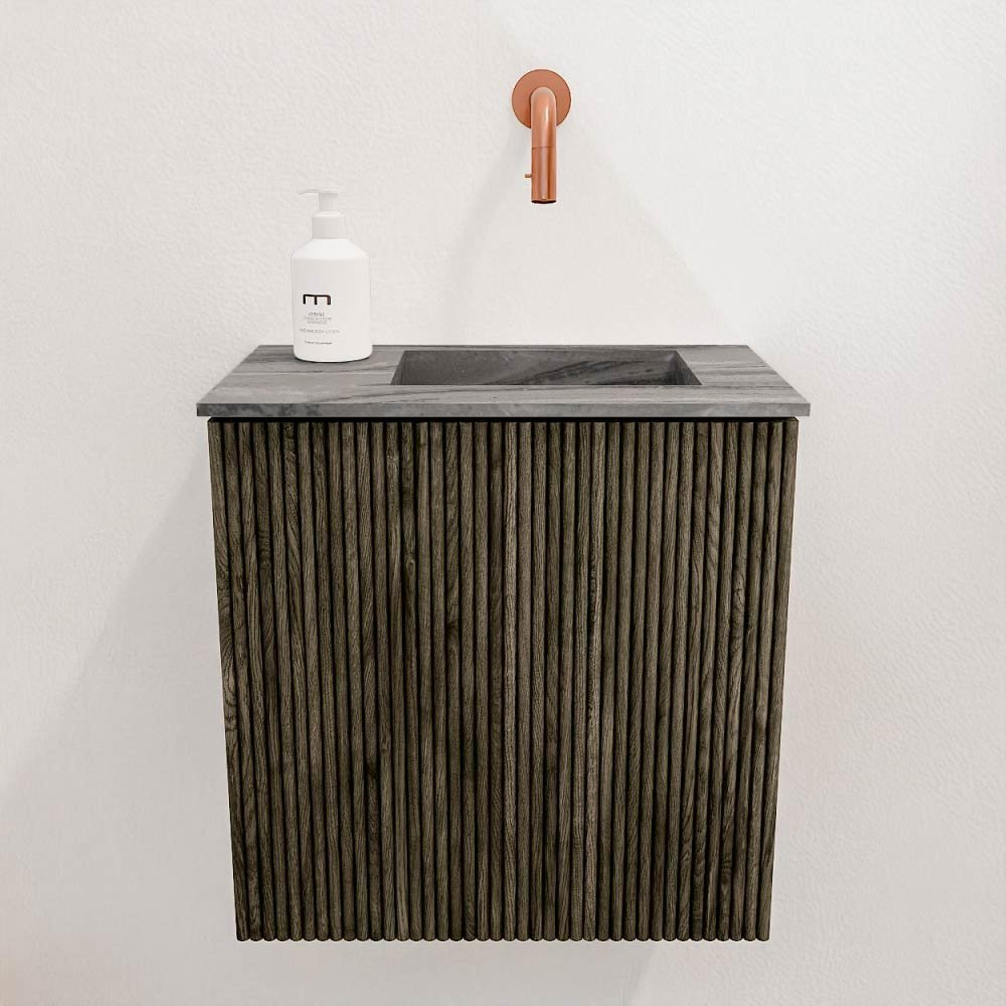 Mondiaz JOYA-DLUX 40cm toiletmeubel - kleur Shadow - Wastafel FAYE positie Rechts Zonder kraangat kleur Sombra.