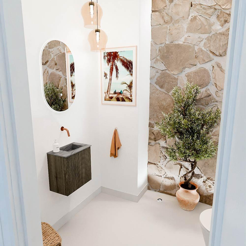 Met dit compacte meubel geef je jouw toilet of kleine badkamer direct een stijlvolle en praktische upgrade. Het meubel combineert een verfijnde uitstraling met slimme functionaliteit, waardoor je ruimte optimaal benut wordt zonder in te leveren op design. De warme, donkere tint van de kast voegt een moderne en toch tijdloze sfeer toe, terwijl de bijpassende wastafel perfect aansluit op jouw dagelijkse ritueel. Dankzij het doordachte formaat en de rechte positionering van de wastafel aan de rechterkant, past dit meubel moeiteloos in kleinere ruimtes en zorgt het voor een opgeruimd geheel. Zo creëer je een badkamer die niet alleen mooi oogt, maar ook prettig en efficiënt in gebruik is.