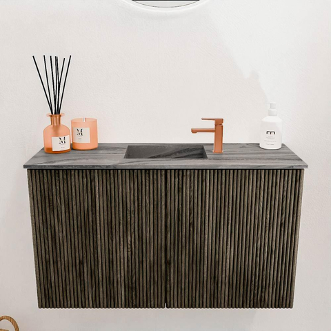 De combinatie van massief eikenhout aan de voorkant en eikenfineer aan de zijkanten geeft dit meubel een natuurlijke en luxe uitstraling. De donkere Shadow kleur voegt een warme, elegante touch toe die moeiteloos past bij verschillende badkamerstijlen. Door het strakke ontwerp en de hoogwaardige afwerking voelt het meubel niet alleen exclusief aan, maar tilt het ook de hele ruimte naar een hoger niveau. Met dit meubel kies je voor een tijdloos design dat jarenlang meegaat en altijd modern blijft ogen.