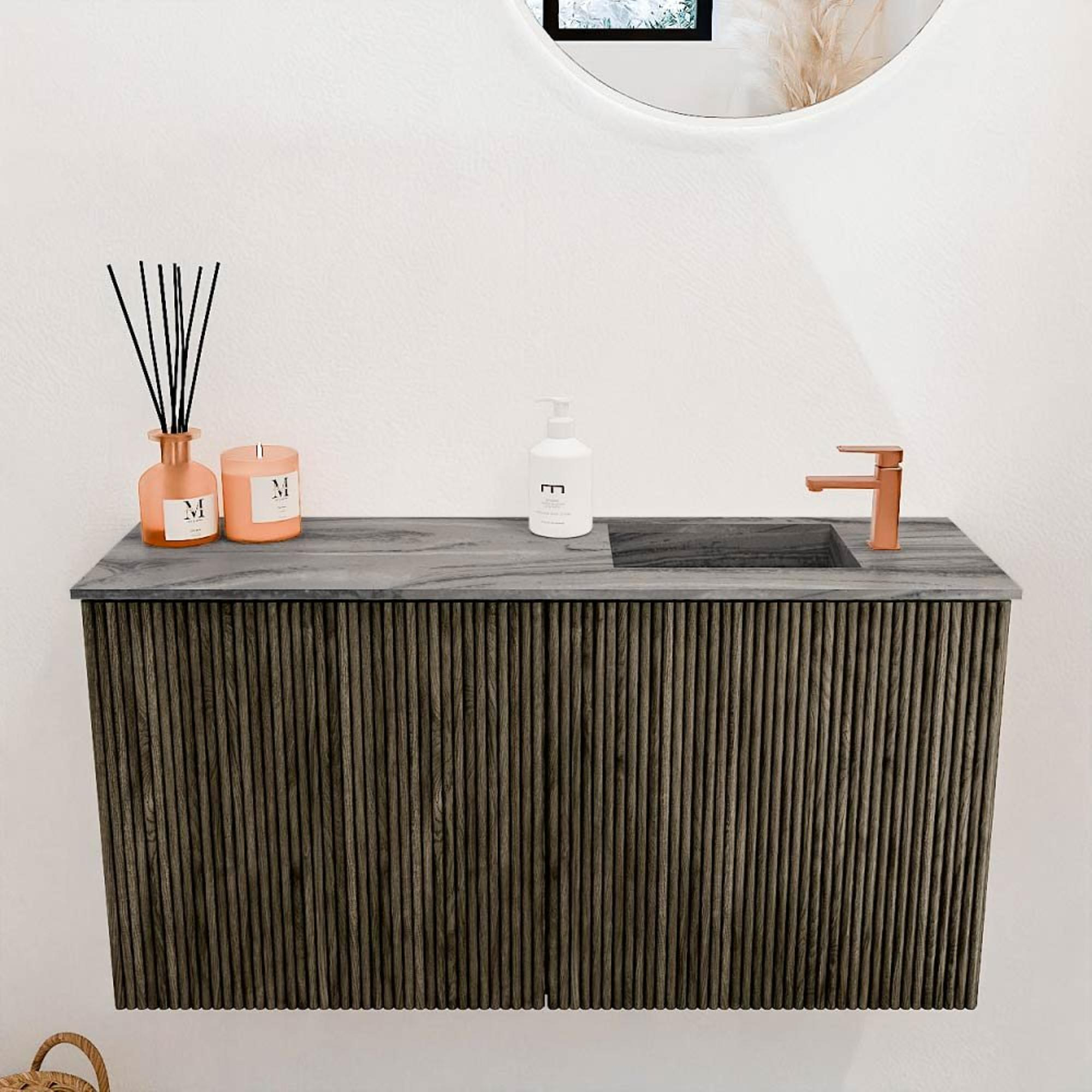 - Wastafel Faye, rechts gepositioneerd met één kraangat – gebruiksvriendelijk en praktisch