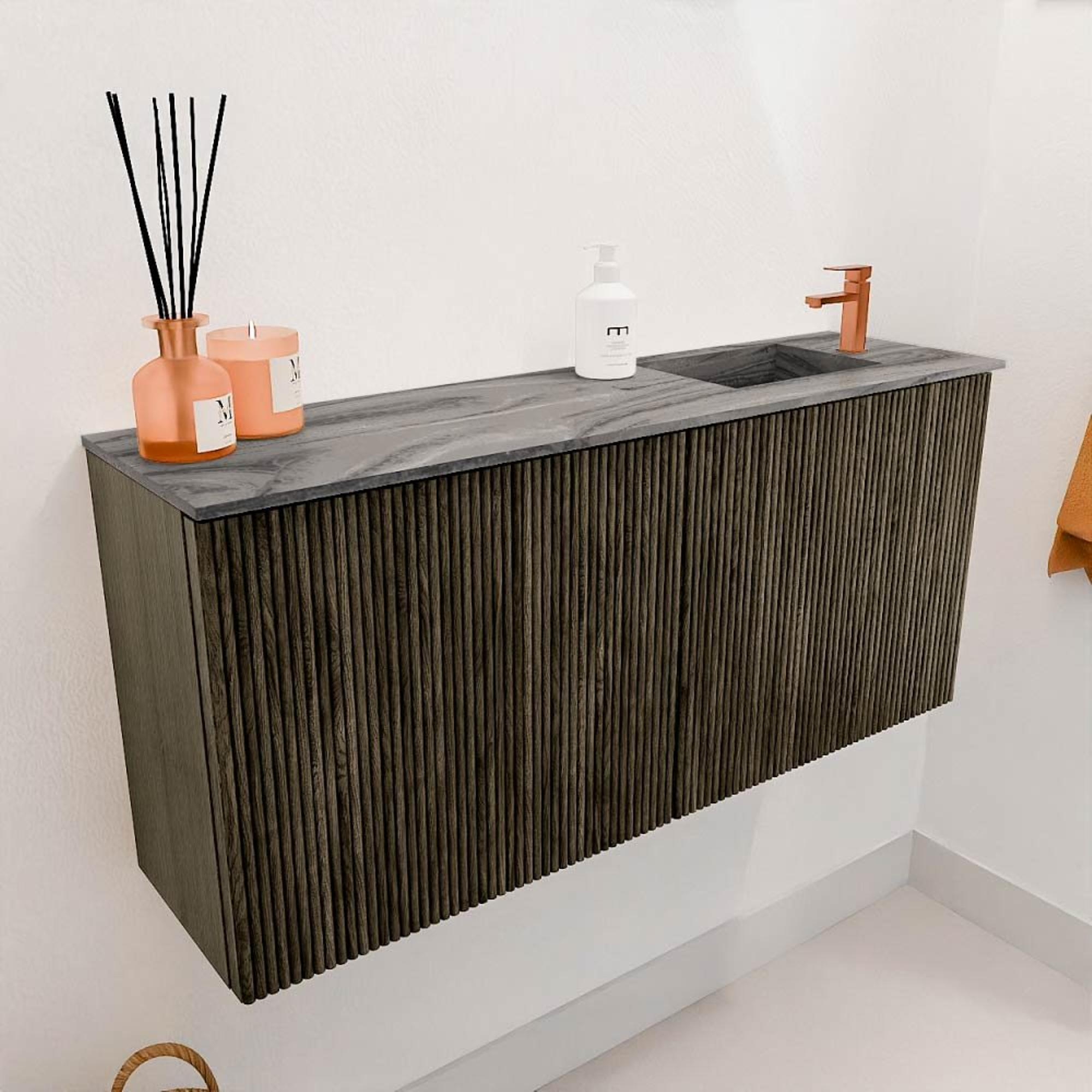 Het meubel valt direct op door zijn elegante, verticale groeven en de diepe, schaduwrijke kleur die een warme en uitnodigende sfeer creëert. Deze combinatie van design en kleur zorgt ervoor dat het meubel een echte blikvanger wordt in jouw badkamer. De subtiele details geven het geheel een luxe uitstraling zonder te overheersen, waardoor het perfect te combineren is met diverse interieurstijlen. Zo voeg je moeiteloos een vleugje klasse toe aan jouw badkamer, wat je elke dag opnieuw zal waarderen.Duurzaam