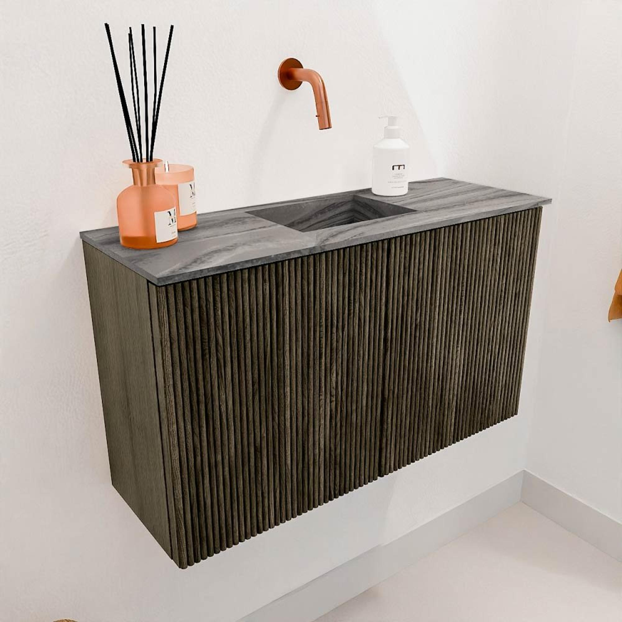 Mondiaz JOYA-DLUX 70cm toiletmeubel - kleur Shadow - Wastafel FAYE positie Midden Zonder kraangat kleur Sombra.
