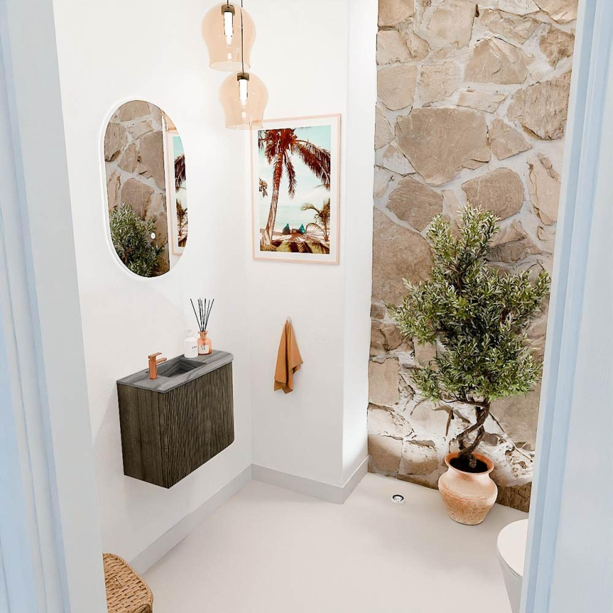 Mondiaz JOYA-DLUX 51.6cm toiletmeubel - ronding rechts kleur Shadow - Wastafel FAYE positie Links 1 kraangat kleur Sombra.
