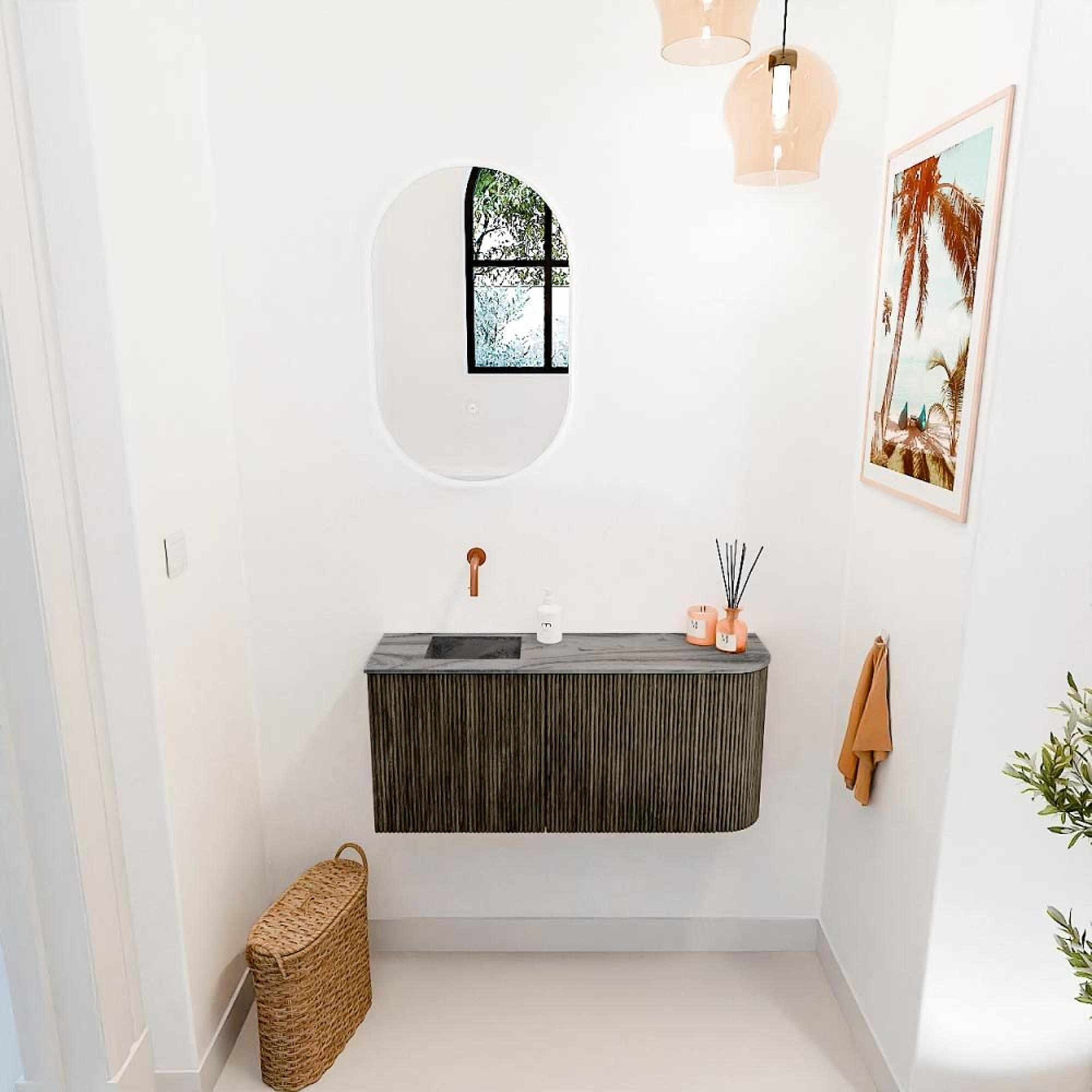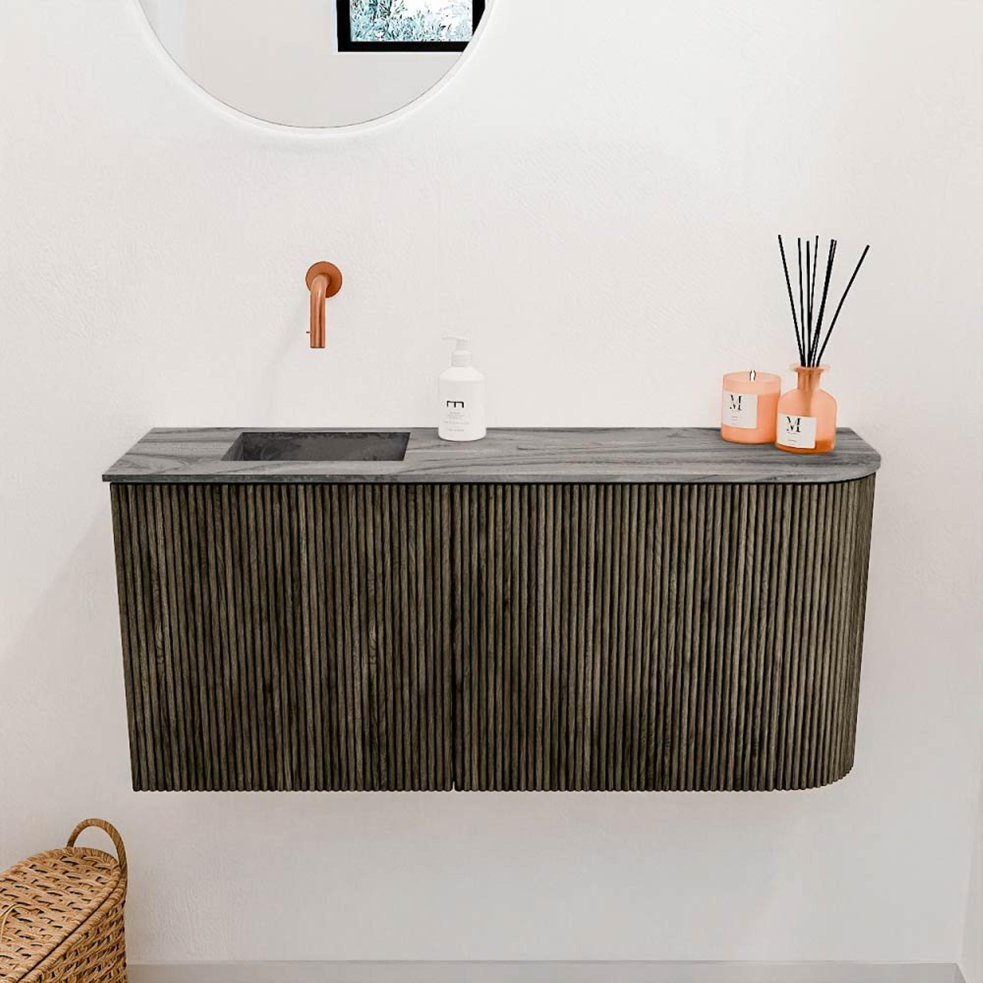 Mondiaz JOYA-DLUX 91.6cm toiletmeubel - ronding rechts kleur Shadow - Wastafel FAYE positie Links Zonder kraangat kleur Sombra.