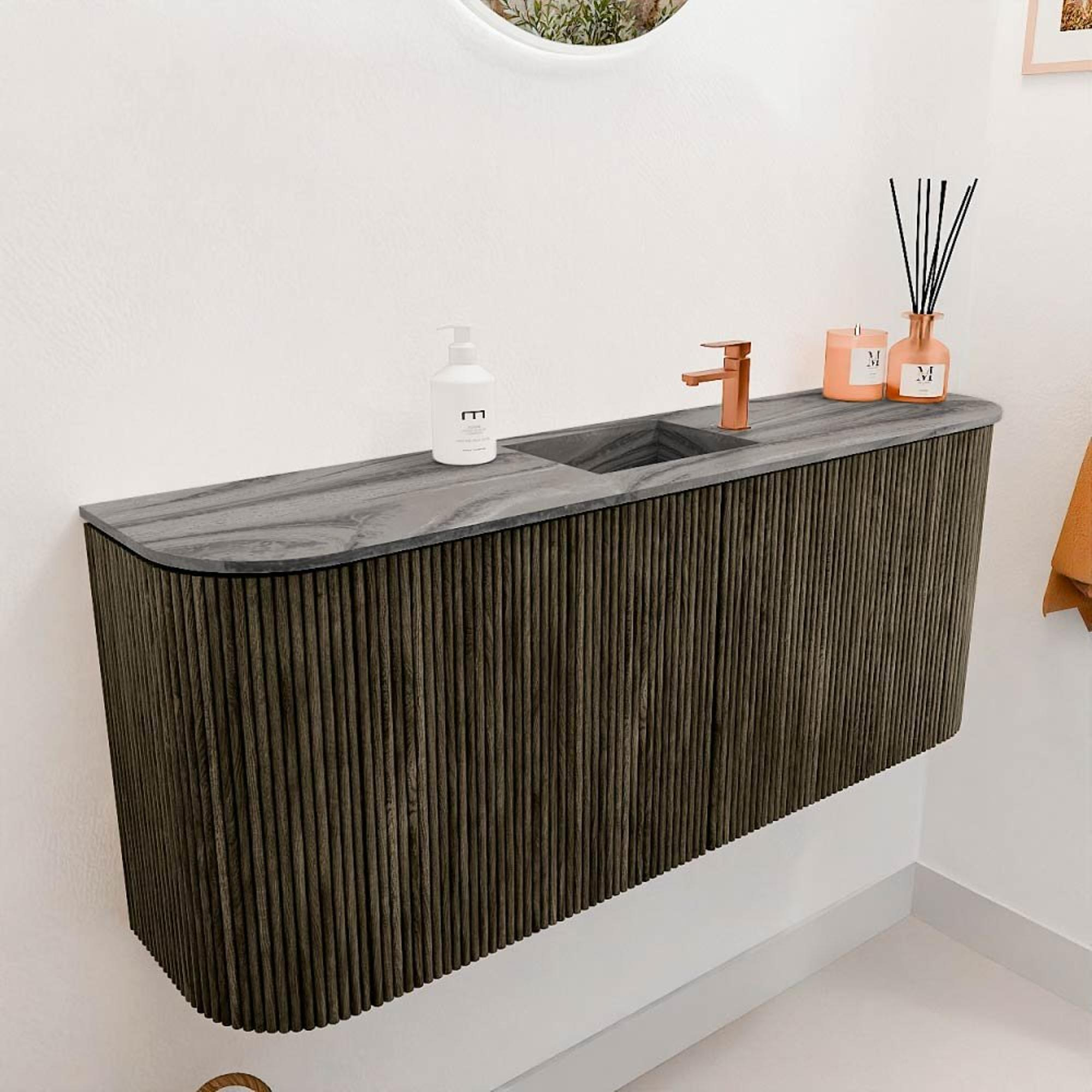De unieke rondingen aan beide zijden van het meubel zorgen voor een zachte en moderne uitstraling die direct opvalt. De kleur Shadow geeft het geheel een tijdloze en luxe uitstraling, waardoor het meubel moeiteloos in verschillende badkamerstijlen past. Dankzij het doordachte design wordt jouw badkamer niet alleen mooier, maar ook uitnodigender. Zo creëer je een ruimte waar je je echt thuis voelt en waar stijl en comfort samenkomen.