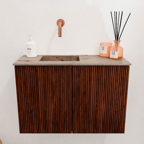 De opvallende Ruby kleur in combinatie met de warme eikenhouten fronten geeft jouw badkamer een exclusieve uitstraling. Dit meubel is een echte blikvanger die moeiteloos past bij diverse interieurstijlen, van modern tot landelijk. De strakke lijnen en het doordachte design zorgen ervoor dat het geheel rustig en evenwichtig oogt. Zo creëer je een badkamer waar je trots op bent en die uitnodigt om te ontspannen. Met dit meubel haal je een stijlvol element in huis dat je badkamer direct naar een hoger niveau tilt.