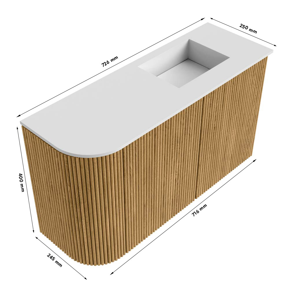 Met een breedte van 61,6 cm is dit meubel ideaal voor kleinere ruimtes waar je toch voldoende opbergruimte wilt. De wastafel met één kraangat aan de rechterkant is perfect afgestemd op jouw dagelijkse gebruik, waardoor je eenvoudig je favoriete kraan kunt plaatsen. De ronde vorm aan de linkerkant zorgt ervoor dat het meubel prettig in de ruimte valt, zonder scherpe hoeken die in de weg kunnen zitten. Dit maakt het meubel niet alleen praktisch, maar ook veilig en comfortabel in gebruik.