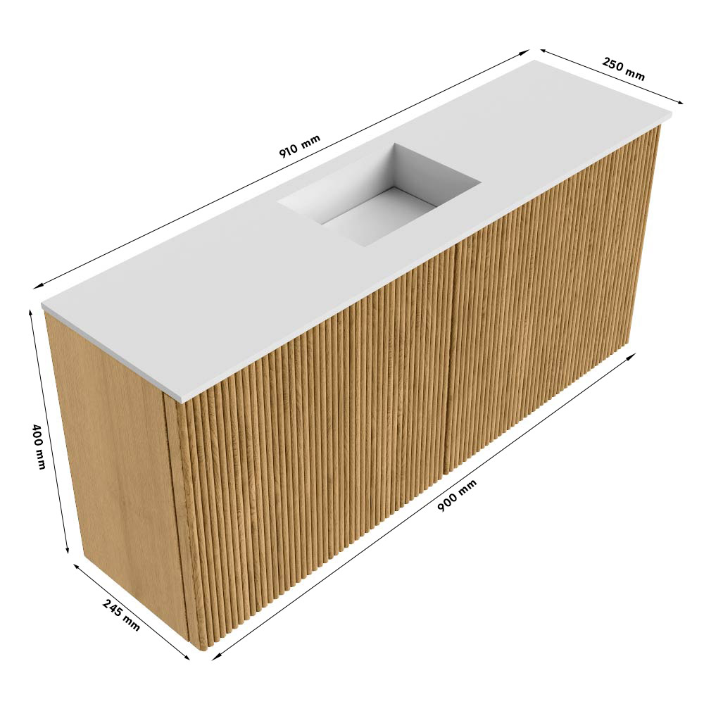 Met een breedte van 90 cm en twee ruime deuren biedt dit meubel voldoende opbergruimte voor al je badkamerbenodigdheden. De wastafel is slim ontworpen met een middenpositie en zonder kraangat, zodat je zelf de kraan kunt kiezen die het beste bij jouw wensen past. Dankzij de wandmontage creëer je een ruimtelijk effect en houd je de vloer vrij, wat het schoonmaken een stuk eenvoudiger maakt. Dit meubel combineert praktische voordelen met een strak design, waardoor het een slimme keuze is voor elke badkamer.