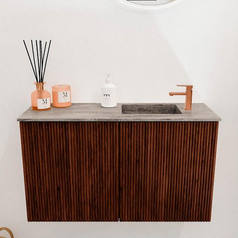 De diepe, rijke Ruby-kleur geeft het meubel een luxe en eigentijdse uitstraling die direct opvalt. Dit zorgt ervoor dat jouw toiletruimte een warme en persoonlijke sfeer krijgt, zonder dat het te overheersend wordt. Het strakke design met subtiele details past moeiteloos in diverse interieurstijlen, van modern tot klassiek. Zo voeg je een echte eyecatcher toe die jouw badkamer compleet maakt en waar je trots op kunt zijn.