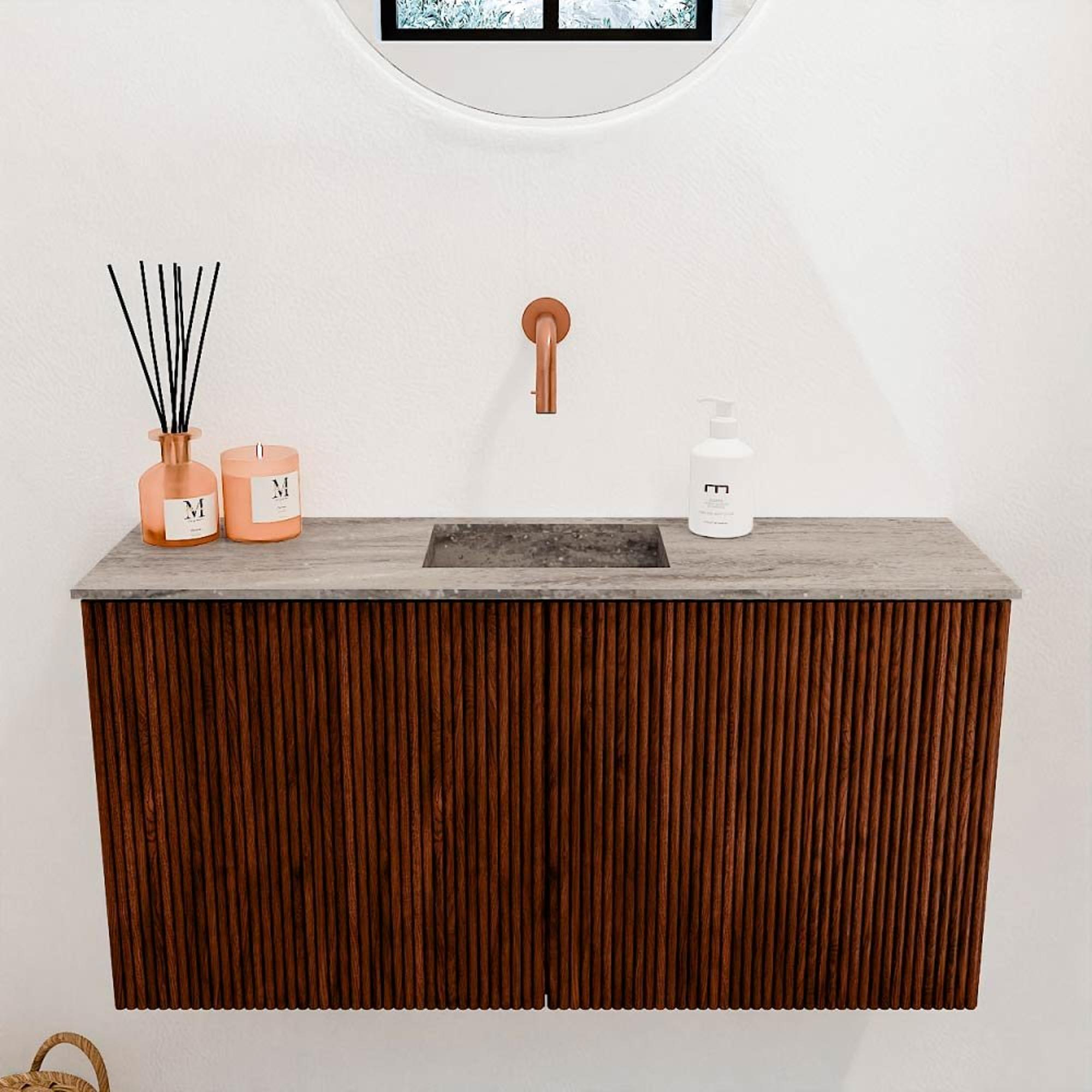 De verticale groeven in het massief eikenhout geven het meubel een verfijnde en eigentijdse uitstraling. De warme Ruby-kleur zorgt voor een natuurlijke en uitnodigende sfeer, die je badkamer meteen een luxe upgrade geeft. Dit meubel is niet alleen een functioneel element, maar ook een echte blikvanger die je interieur compleet maakt. Door het subtiele design past het moeiteloos bij verschillende badkamerstijlen, van modern tot klassiek. Zo creëer je een ruimte die zowel rust uitstraalt als karakter heeft.