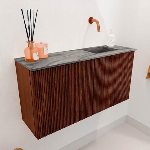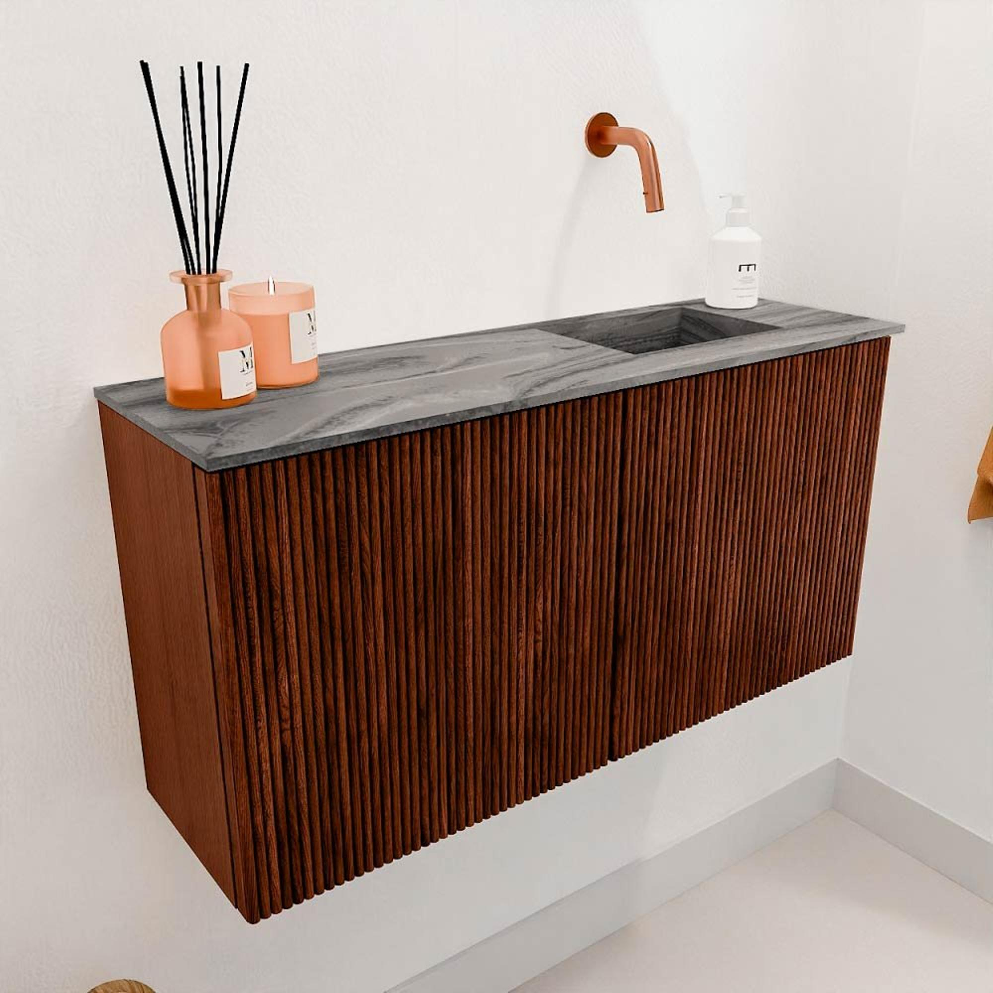 Mondiaz JOYA-DLUX 80cm toiletmeubel - kleur Ruby - Wastafel FAYE positie Rechts Zonder kraangat kleur Sombra.