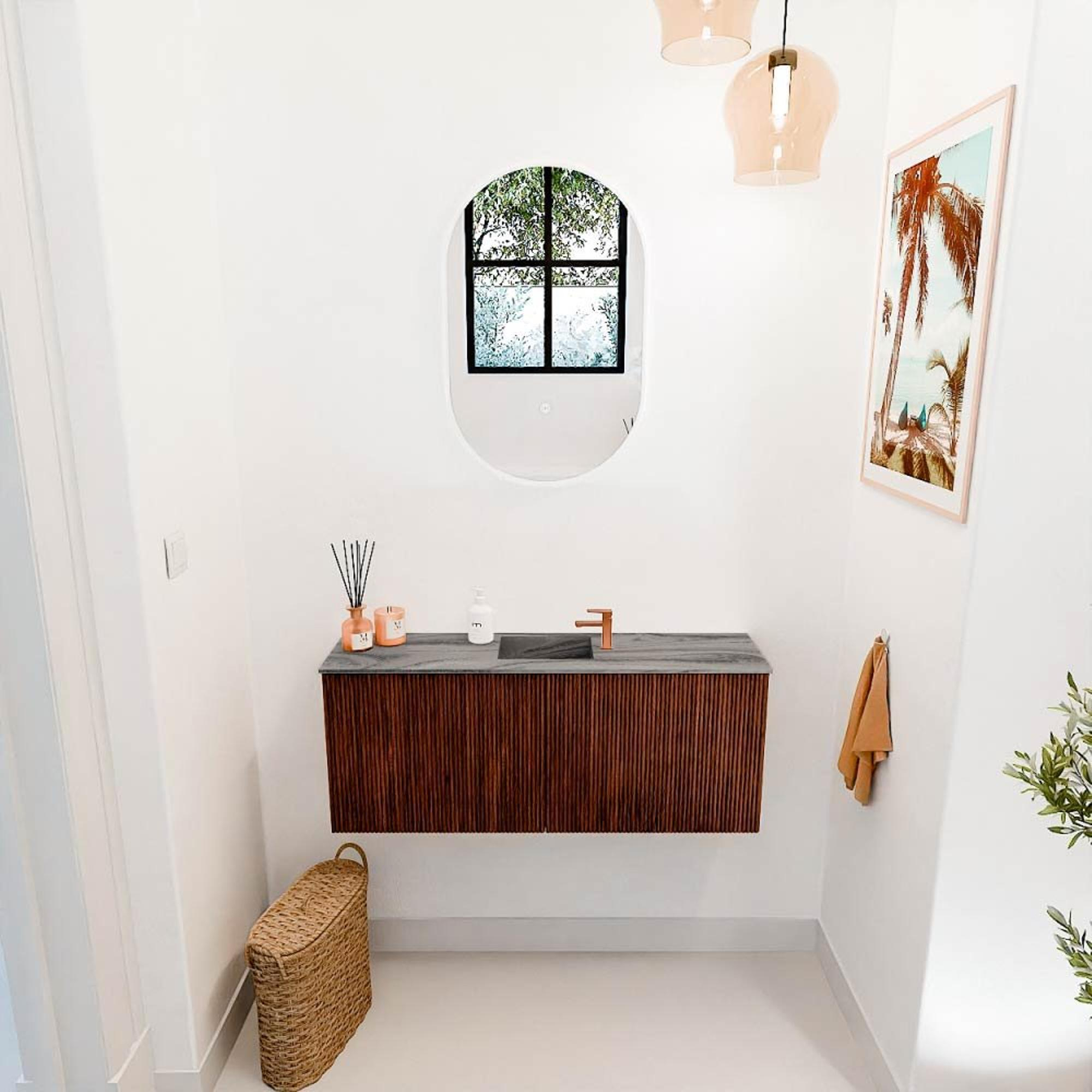 Naast het fraaie design is dit meubel ook bijzonder praktisch. Met een breedte van 100 cm biedt het voldoende opbergruimte achter de twee deuren om al je badkamerbenodigdheden netjes en uit het zicht te bewaren. De centrale wastafel met één kraangat is ideaal voor een kraan naar keuze en zorgt voor een overzichtelijke en efficiënte indeling. Dankzij de soft-close en push-to-open systemen open en sluit je de deuren moeiteloos, wat het gebruiksgemak vergroot. Dit maakt het meubel perfect geschikt voor drukke badkamers of gastentoiletten waar comfort en snelheid belangrijk zijn. Zo combineer je moeiteloos stijl met slimme functionaliteit.
