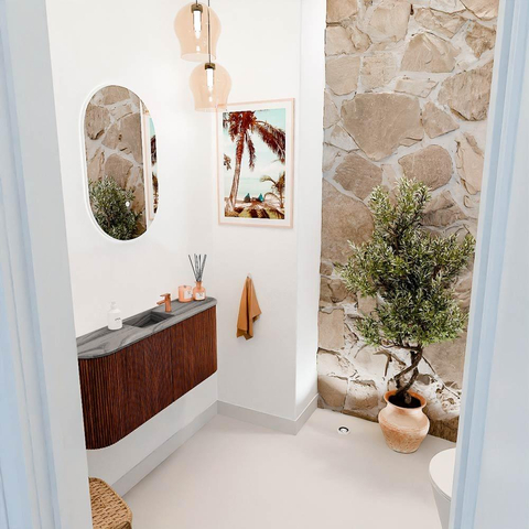 De combinatie van massief eikenhout met een warme Ruby-kleur en de zachte rondingen aan beide zijden maken dit meubel tot een stijlvol pronkstuk in jouw badkamer. De natuurlijke houtstructuur zorgt voor een authentieke en luxe uitstraling die je niet snel ergens anders vindt. Door de subtiele kleurkeuze en het doordachte design past het meubel moeiteloos in diverse interieurstijlen, van modern tot klassiek. Zo creëer je een badkamer die niet alleen functioneel is, maar ook uitnodigt om te ontspannen en te genieten.