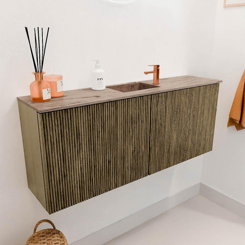 Met dit prachtige meubel geef je jouw badkamer direct een warme en natuurlijke uitstraling. Het combineert de robuuste charme van massief eikenhout met een moderne, strakke vormgeving die perfect past in een eigentijdse badkamer. Dankzij de subtiele kleur Dusk krijgt het meubel een tijdloze elegantie, terwijl de beige wastafel in de kleur Arena een zachte, uitnodigende sfeer creëert. Dit meubel is niet alleen een lust voor het oog, maar ook uiterst praktisch. De royale afmetingen en slimme indeling bieden voldoende opbergruimte om jouw badkamer netjes en overzichtelijk te houden. Door de wandmontage oogt de ruimte bovendien ruimtelijk en licht. Zo transformeer je jouw badkamer in een plek waar je elke dag met plezier begint en eindigt.