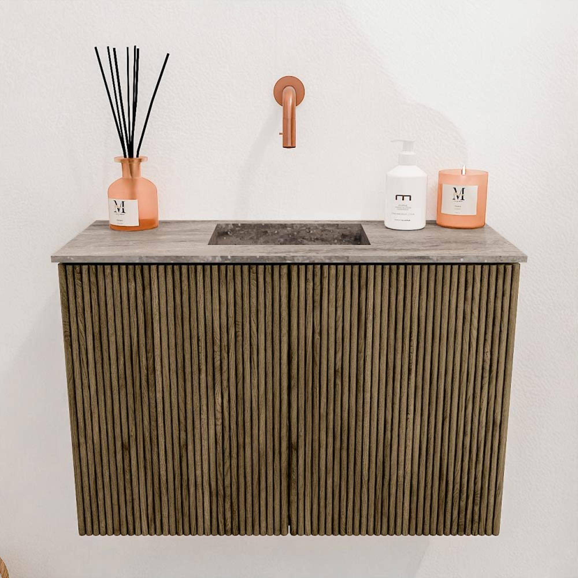 Het meubel valt direct op door de warme kleur Dusk en het gebruik van massief eikenhout aan de voorkant. Dit natuurlijke materiaal geeft een luxe en authentieke uitstraling die je badkamer een unieke touch geeft. De combinatie met eikenfineer aan de zijkanten zorgt voor een subtiel contrast en een hoogwaardige afwerking. Dankzij het strakke, moderne design past dit meubel perfect in zowel klassieke als eigentijdse interieurs. Zo creëer je een badkamer die niet alleen functioneel is, maar ook een echte eyecatcher.
