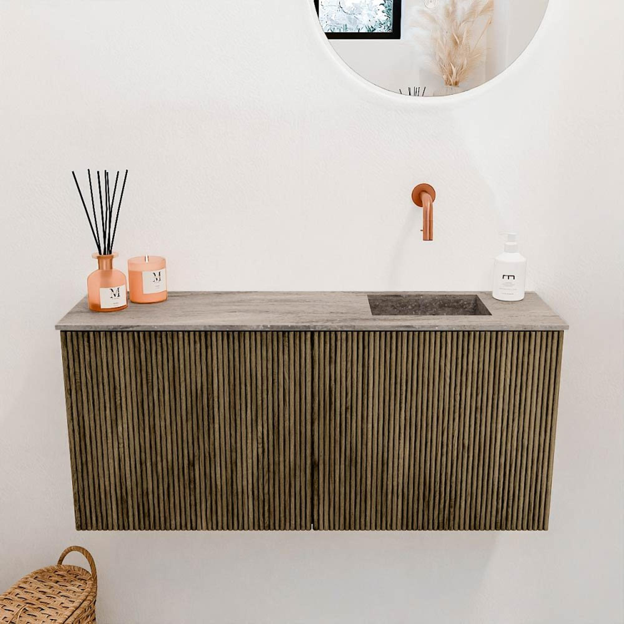 Het meubel valt direct op door zijn tijdloze en natuurlijke uitstraling. De kleur Dusk geeft een warme, zachte tint die moeiteloos past in diverse interieurstijlen, van modern tot klassiek. De fronten van massief eikenhout zorgen voor een authentieke en luxe look, terwijl de eiken fineer zijpanelen het geheel een verfijnde afwerking geven. Dit maakt het meubel niet alleen een functioneel element, maar ook een echte eyecatcher in jouw badkamer. Door de subtiele kleur en het natuurlijke materiaal voelt de ruimte direct rustgevend en uitnodigend aan. Zo geniet je elke dag van een badkamer die niet alleen praktisch is, maar ook stijlvol en sfeervol.