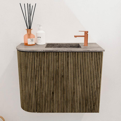 De elegante ronding aan de linkerkant geeft het meubel een unieke uitstraling die direct opvalt. De combinatie van de diepe Dusk-kleur met de subtiele Oza-wastafel zorgt voor een warme en moderne sfeer. Dit meubel past moeiteloos in diverse interieurstijlen, van strak en minimalistisch tot warm en natuurlijk. Door het doordachte design wordt jouw badkamer een plek waar je elke dag met plezier begint en eindigt. Het meubel is een echte blikvanger die jouw persoonlijke stijl versterkt zonder te overheersen.Duurzaam